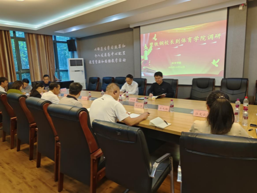 2025年10月16日,校长樊铁钢到体育学院开展调研,校长办公室主任曾旭葵陪同并主持召开座谈会。体育学院领导班子成员、科级干部、教研室主任、教师代表等参加调研座谈。