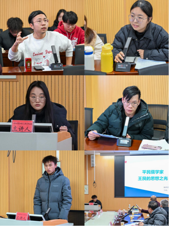 阳明学与黔学研究院研究生代表黄全欣、杨宇彤、何南骏、钟炎分别就网络语言伦理、“龙岗四规”、平民儒学家王艮的思想、阳明“礼即理”思想等议题发表见解。马克思主义学院本科生代表董秋雨、雷飞则围绕AI科技伦理、良知与实践等现实问题展开了深入思考。这些发言充分展现了beat365师生扎实的学术功底和活跃的哲学思辨能力。