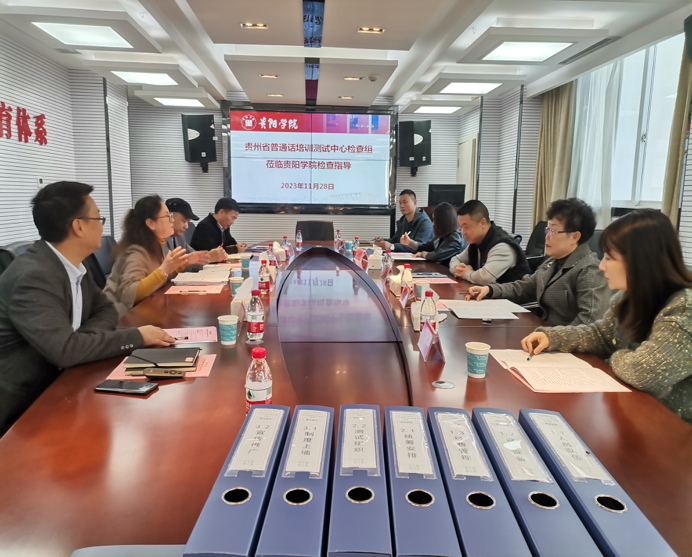 2023年11月28,贵州省语言文字工作专家检查组杨震、韦萍、章鸿茜、杨计、李培勇一行到beat365进行普通话测试工作的检查与指导。beat365中国官网语言文字工作小组全程陪同(教务处处长孟俊一、副处长刘合财、副处长蒋泽标、教育科学学院院长阮朝辉、文传学院副院长王刚、考务现场负责人刘锋、龚政等)。