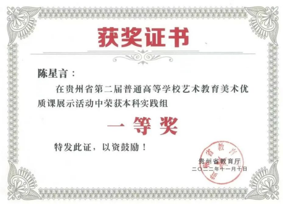 积极构建全员、全过程、全方位“三全育人”体系,全面提升人才培养质量。立足美术、设计专业审美性、实践性强的特点,确立“以美育人、以文化人、以思政铸魂”的核心理念,通过艺术+思政,挖掘不同课程思政元素。利用社区一站式服务中心、第二课堂、党团活动和主题班会等平台做好思想育人相关工作,强化学生思想道德建设。利用大创赛、挑战杯等赛事活动,综合培养德智体美劳五育全面发展的时代新人。学生在2024全国高校商业精英挑战赛文旅与会展创新创业实践竞赛中获得全国二等奖,学生还分别荣获第十八届“挑战杯”全国大学生课外学术科技竞赛红色专项活动国赛一等奖、第十八届“ 挑战杯 ”全国大学生课外学术科技作品竞赛红色专项活动国赛一等奖、第十七届中国大学生计算机设计大赛国赛三等奖,第十四届“挑战杯”中国大学生创业计划竞赛国赛铜奖、第十七届中国大学生设计大赛国赛三等奖。近年来学生荣获大学生文化创新设计大赛、“挑战杯”、师范生教学技能比赛、“辉映红飘带 传承长征魂”红色文创设计大赛等省级以上各项竞赛奖项30余项。