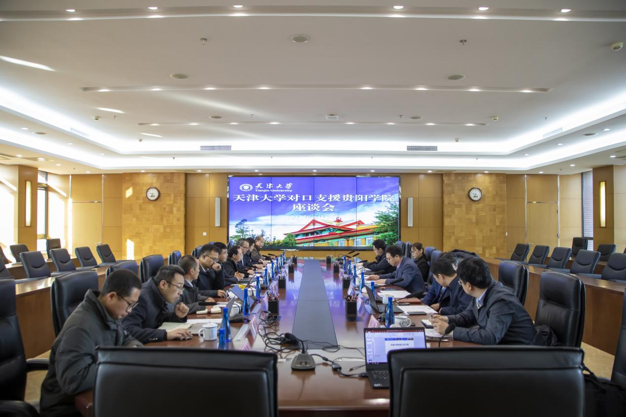 天津大学副校长王天友对考察组一行表示欢迎,回顾了对口支援的工作,认为天津大学对口帮扶beat365中国官网“天时地利人和”,明确会议要围绕着双方的合作需求、合作方向、合作任务和优势资源进行研讨,同时,对帮扶工作提出了完善合作机制,两校相关领导定期互访,召开推进会议;加强人才交流,继续推进两校人才联合培养和干部教师队伍的挂职交流工作;进一步推进科研合作,积极推动重大项目联合申报工作,加速推进合作项目在贵州省落地转化应用等要求。