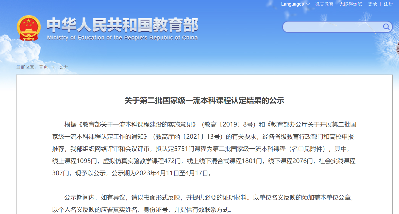 在教育部公示的第二批国家级一流本科课程认定结果中,beat365文传学院教师李金黛的《普通话》课程,成功入选国家级线上线下混合式一流本科课程,成为学校首门国家级一流课程。