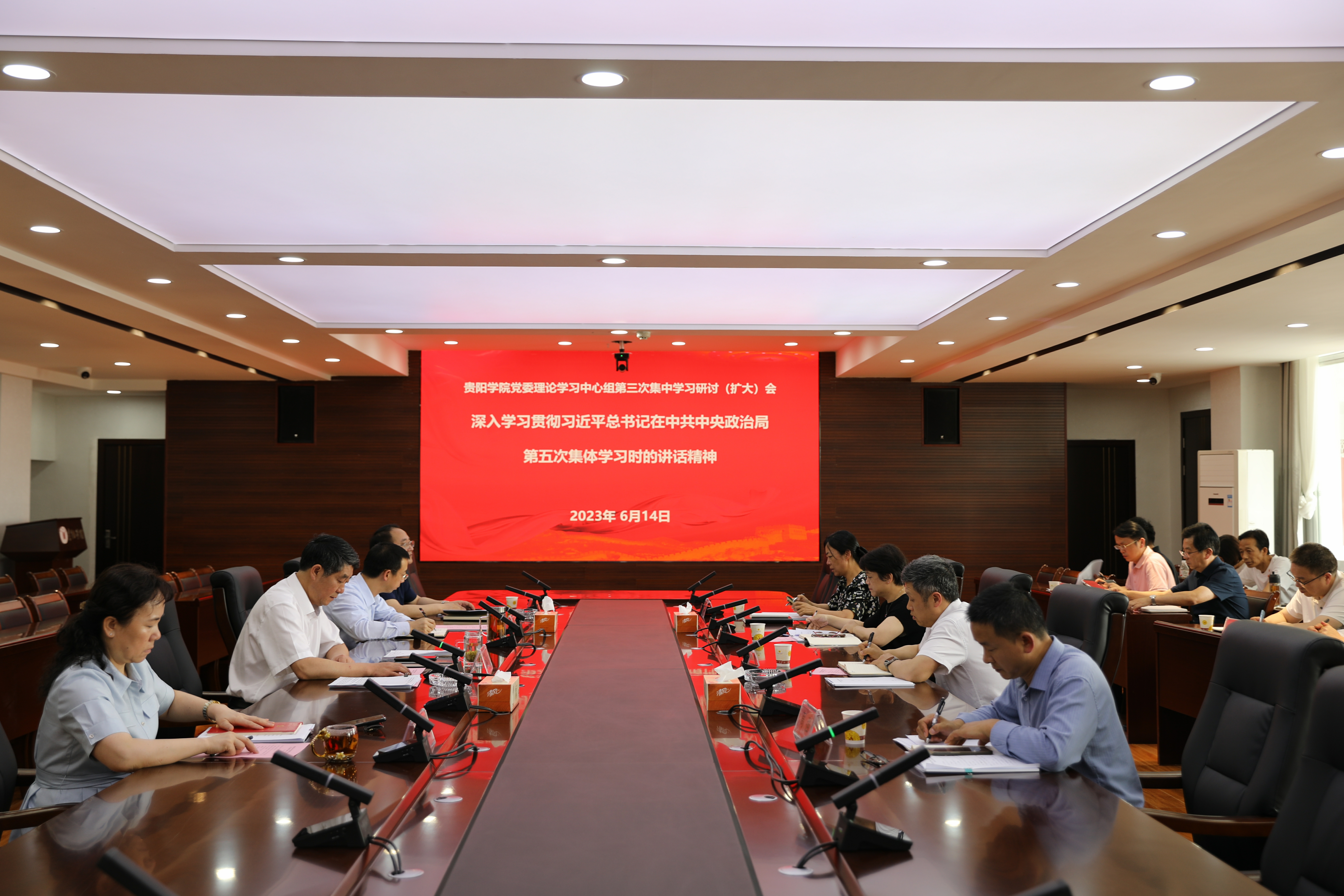 6月14日,beat365中国官网2023年党委理论学习中心组第三次集中学习研讨(扩大)会在九思楼八楼会议室举行。校党委书记吕保平主持学习研讨,党委副书记、校长邓朝勇,校领导焦艳、赵福菓、马力,党委委员周强、许晓璐出席学习研讨。校领导王蜀黔、校直部门代表、各二级党委书记列席。