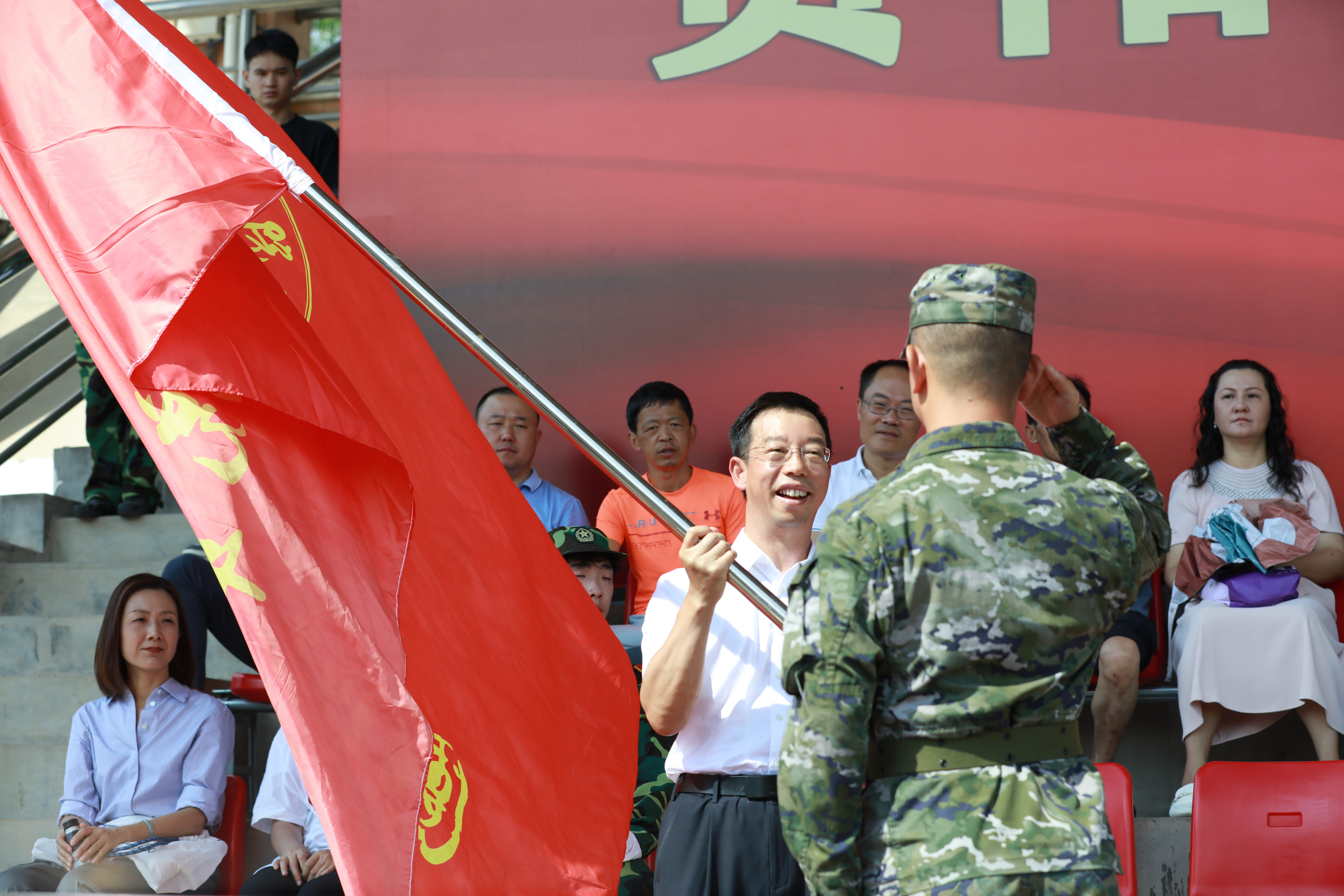 会上,主席台领导和来宾为新生代表佩戴校徽,赵福菓宣读《beat365中国官网关于组建2023级新生军训团的决定》。邓朝勇向新生军训团授旗并宣布军训正式开始。