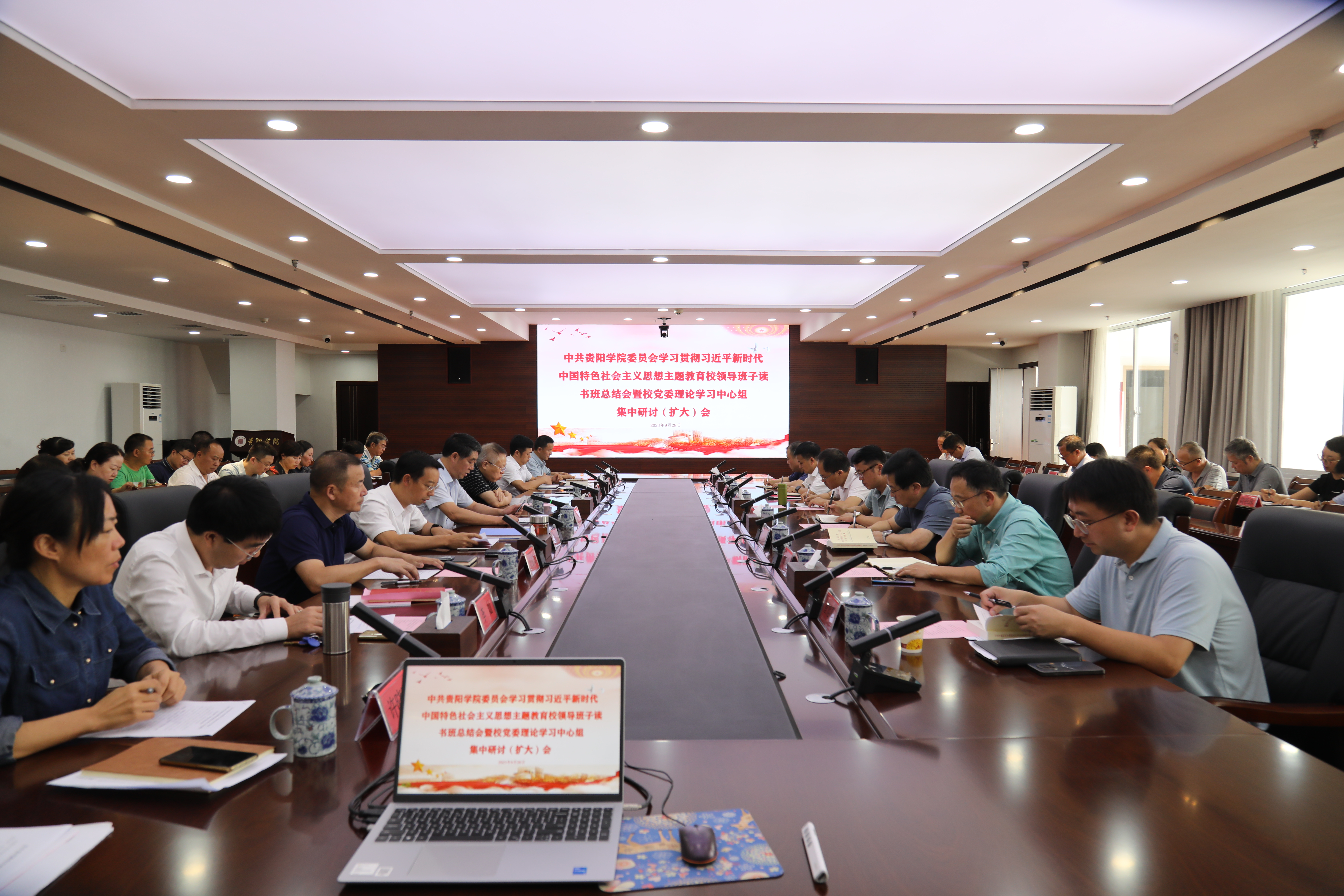本次学习研讨主题为“深入学习贯彻习近平新时代中国特色社会主义思想、习近平总书记视察贵州重要讲话精神和对贵州工作的重要指示批示精神,结合做好分管领域工作、推动学校高质量发展”。会上传达学习了习近平总书记视察贵州重要讲话精神和对贵州工作重要指示批示精神、习近平给东北大学全体师生回信、习近平对网络安全和信息化工作作出重要指示、省委十三届三次全会精神、市委十一届六次全会精神等学习资料。