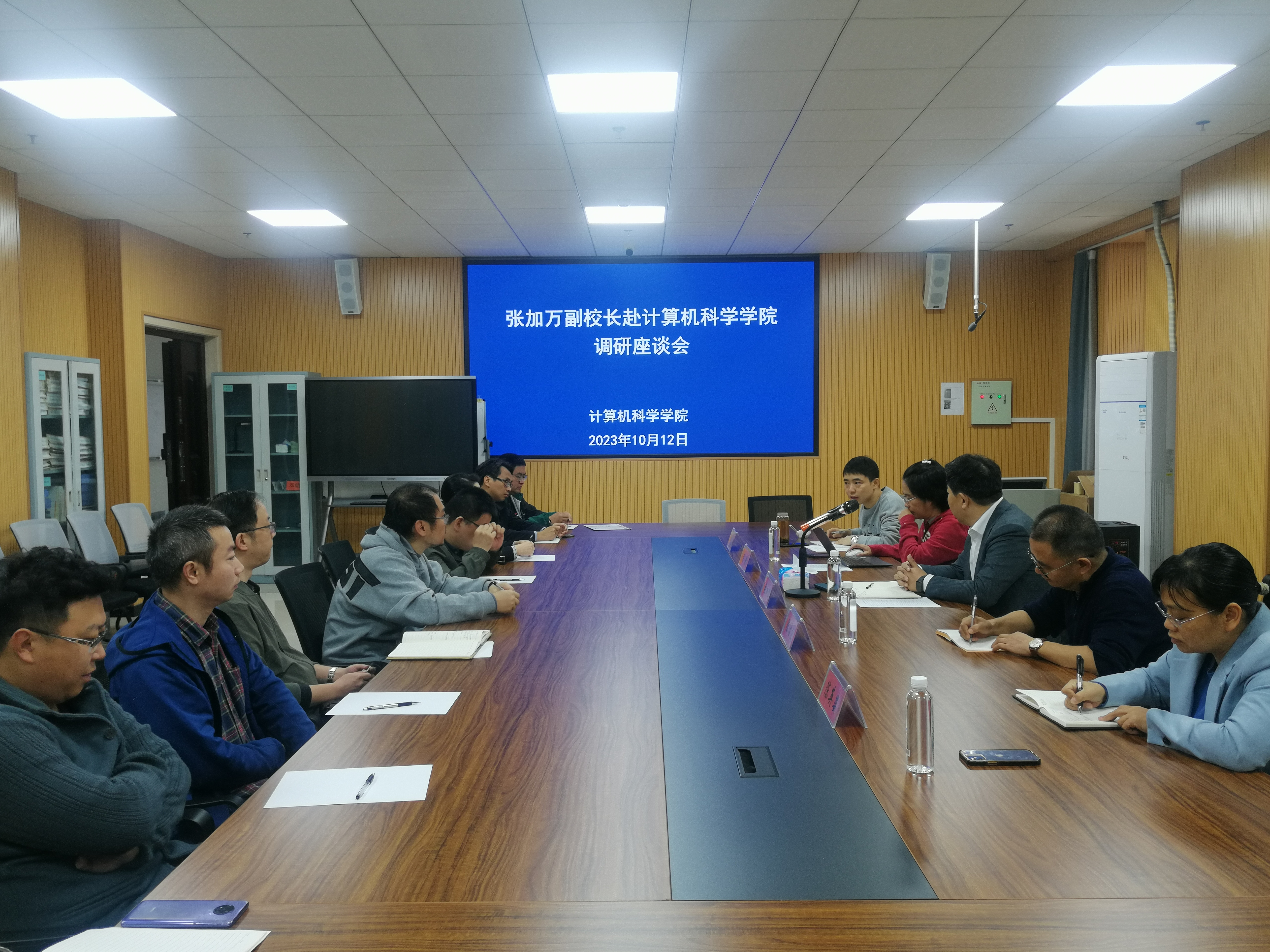 2023年10月12日,校党委委员、副校长张加万在计算机科学学院808会议室开展座谈交流,学院班子成员及教研室主任、实验室主任、教授、博士参加了座谈会。