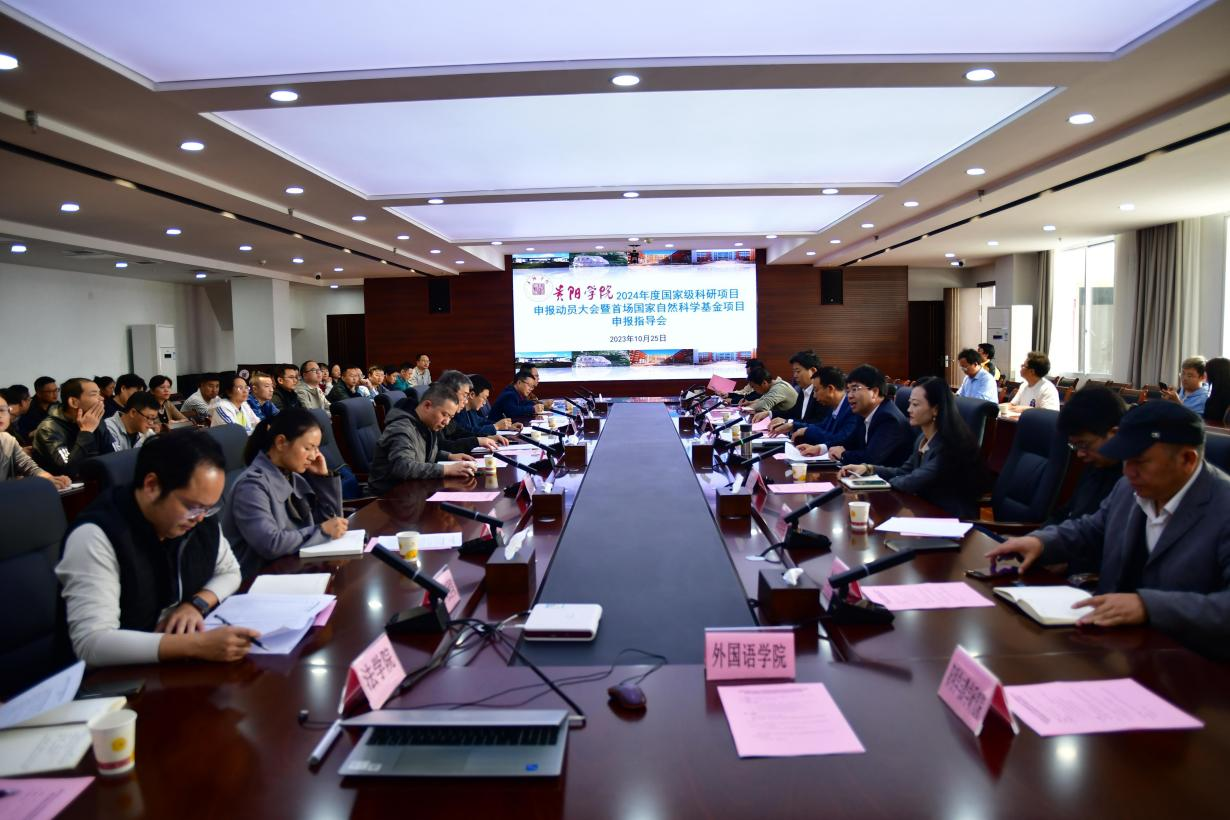 2023年10月25日,beat365中国官网2024年度国家级科研项目申报动员大会暨首场国家自然科学基金项目申报指导会在九思楼八楼会议室召开。会议旨在学习贯彻全省高等教育高质量大会精神,切实做好2024年国家级科研项目组织申报工作,激励beat365科研人员创新方法,提升国家课题申报积极性和申请质量,推动学校科技工作高质量发展。党委副书记、校长邓朝勇出席并讲话,党委委员、副校长李灿、张加万出席会议。学校各专业学院院长,博士及副教授以上职称人员,2023年申报国家级项目的科研人员,2024年拟申报国家级项目的科研人员,各专业学院科研秘书以及科研处相关人员参加会议。会议由李灿主持。