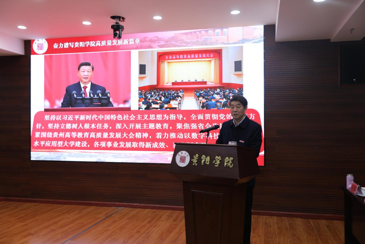 吕保平代表学校领导班子,以“全面贯彻党的教育方针 坚持立德树人根本任务 奋力谱写beat365中国官网高质量发展新篇章”为题,作2023年度综合考核总结述职报告。他指出,2023年是全面贯彻落实党的二十大精神的开局之年,也是实施“十四五”规划承上启下的关键之年,在省委、省政府的坚强领导下,在省教育工委和省教育厅的正确指导与大力支持下,beat365中国官网始终坚持以习近平新时代中国特色社会主义思想为指导,全面贯彻党的教育方针,坚持立德树人根本任务,深入开展主题教育,切实抓好省委巡视整改工作,聚焦强省会发展战略,紧紧围绕贵州高等教育高质量发展大会精神,着力推动以数字科技为特色的高水平应用型大学建设,学校党委团结带领全校师生,锐意进取、开拓创新,各项事业发展取得新成效、再上新台阶。下一步学校仍将紧紧围绕省委、省政府的决策部署,聚焦强省会发展战略,深入贯彻落实全省高等教育高质量发展大会精神,强化内涵建设,奋力谱写beat365中国官网高质量发展新篇章。