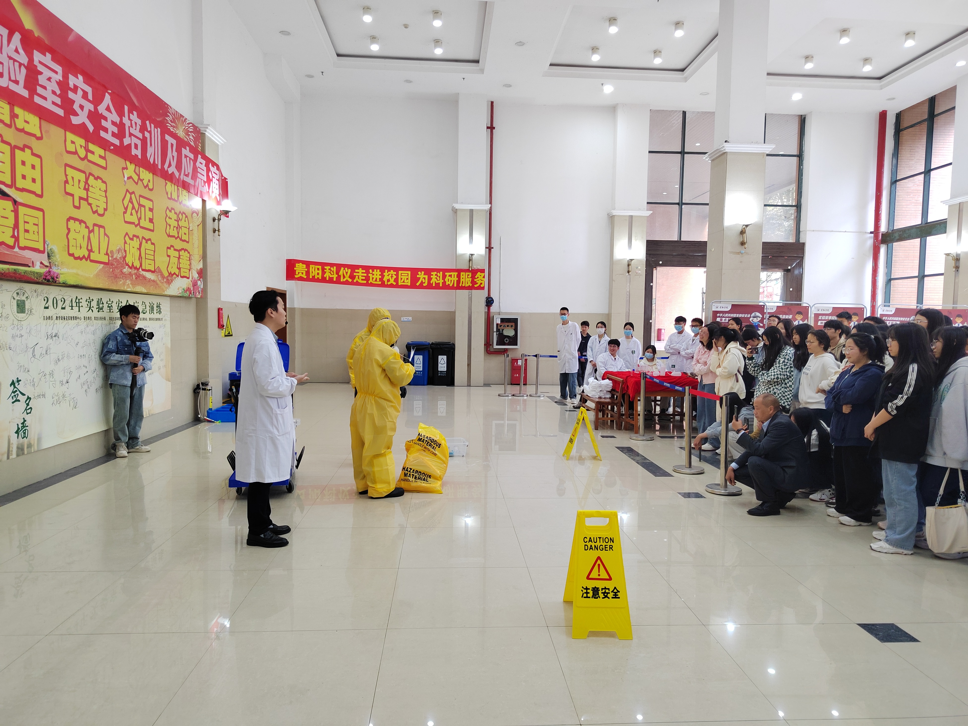 学校副校长王蜀黔,双龙生态环境局副局长李晓飞、双龙公安分局禁毒大队大队长蔡永祥以及贵阳市易制毒化学品行业自律协会相关领导出席会议,学校教学设备及实验管理中心、保卫处、后勤处负责人参加会议,化生类专业学院党政负责人、科研实验平台负责人、实验室主任及管理教师和学生代表260余人参加培训。