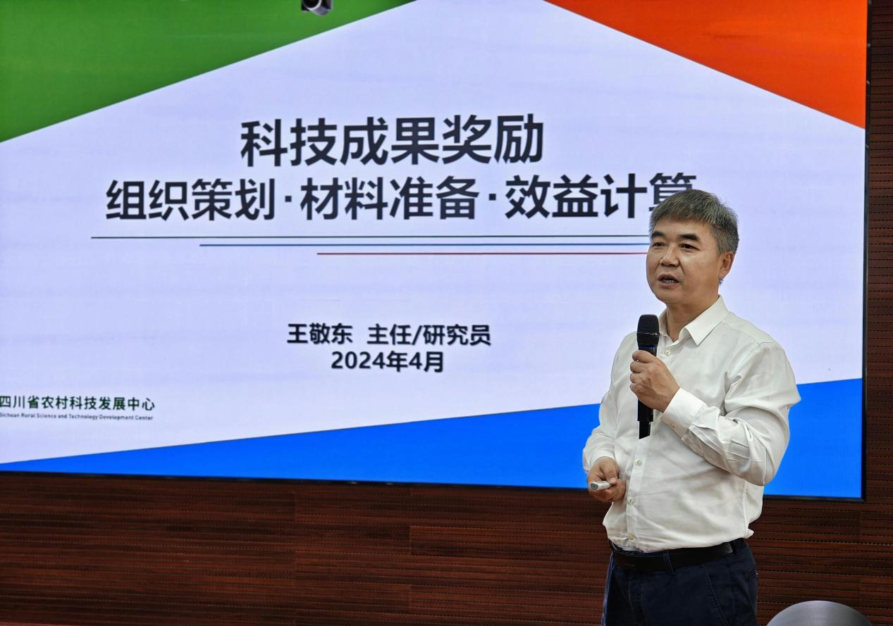 会上,四川省农村科技发展中心主任王敬东研究员对beat3652024年省科学技术奖申报工作进行辅导,并作题为《科技成果奖励组织策划・材料准备・效益计算》的专题报告。