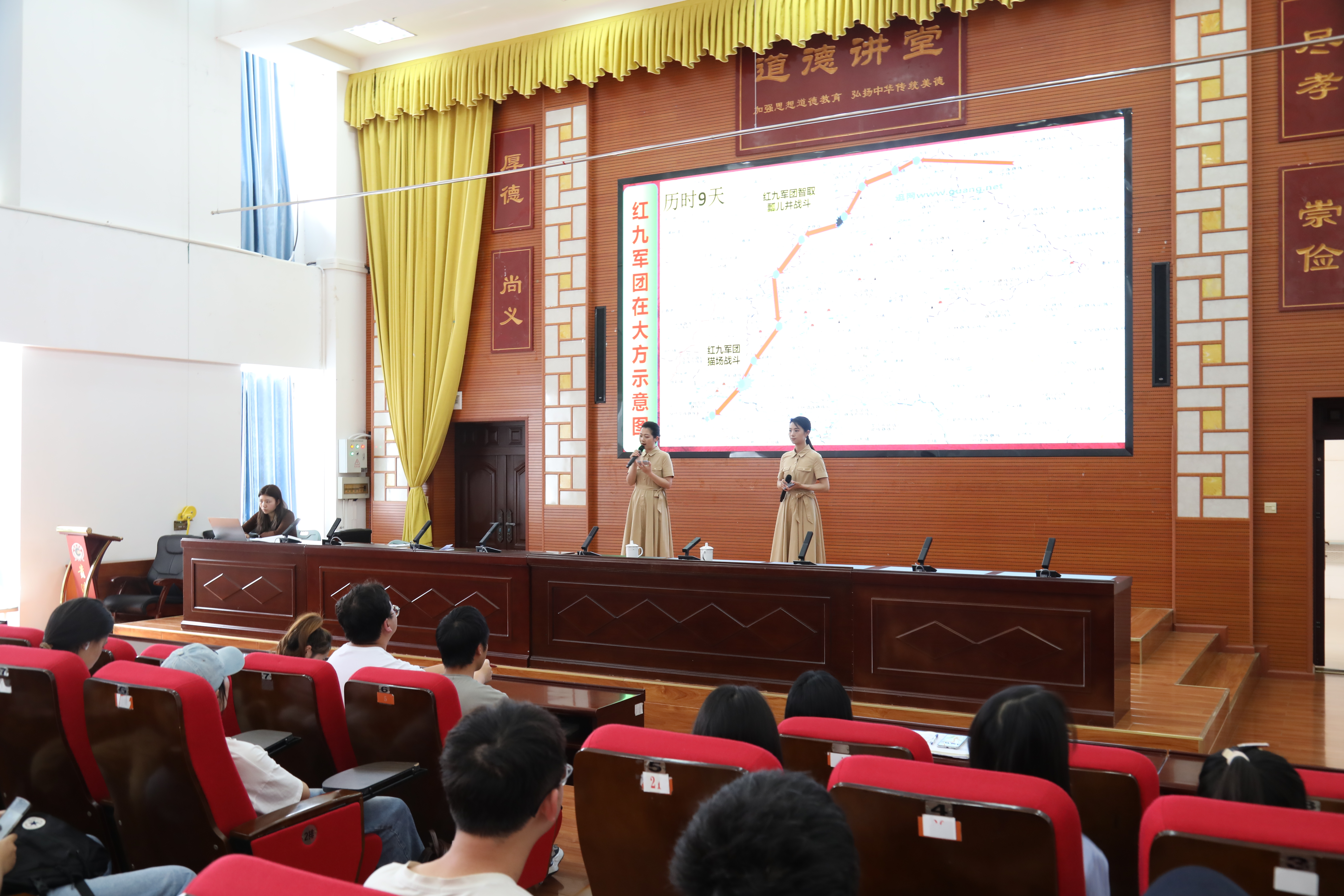 5月22日下午,在beat365中国官网博雅楼道德讲堂,召开全省教育系统“理论宣传二人讲”暨省社科普及宣讲活动走进beat365中国官网宣讲报告会。宣讲人为毕节市红色讲解员先锋队队长胡丽莎、队员杜苓。beat365教师代表、马克思主义学院学生代表共计140余人参加。宣讲会由beat365党委宣传部部长许晓璐主持。