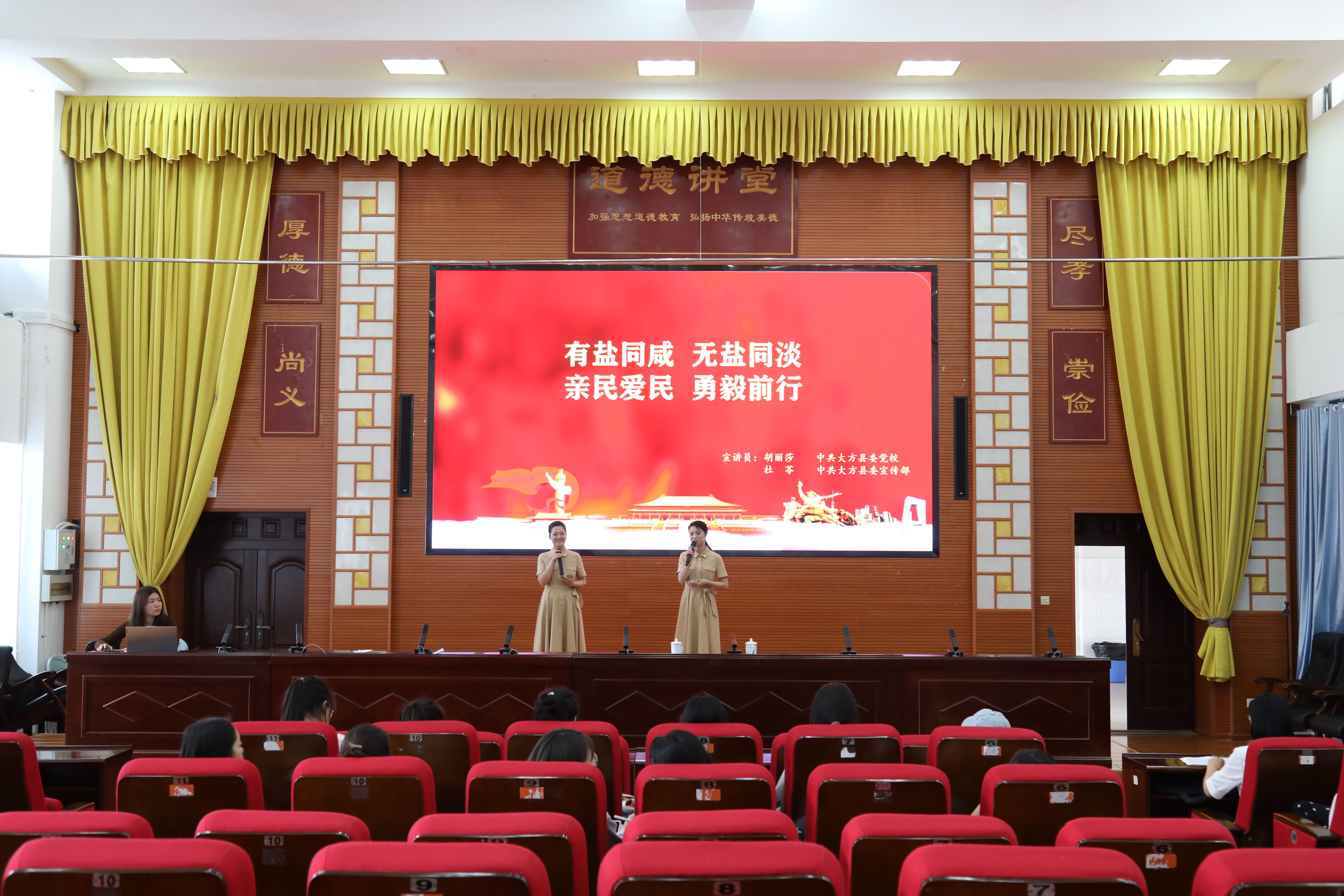 宣讲会上,两位宣讲员以《新征程上“有盐同咸 无盐同淡”亲民爱民 勇毅前行》为主题,向在场师生讲述“瓢儿井分盐”“八堡红军坟”“ 脱贫攻坚战”“疫情防控”四个故事,生动阐释了党与群众有福同享、有难同当,“有盐同咸、无盐同淡”的深厚情怀。宣讲中,两位宣讲员把讲理论与讲实践、讲道理与讲故事相结合,通过身边“小故事”反映当今“大时代”,让听众既能感受家乡“小变化”,又能感受国家“大发展”。