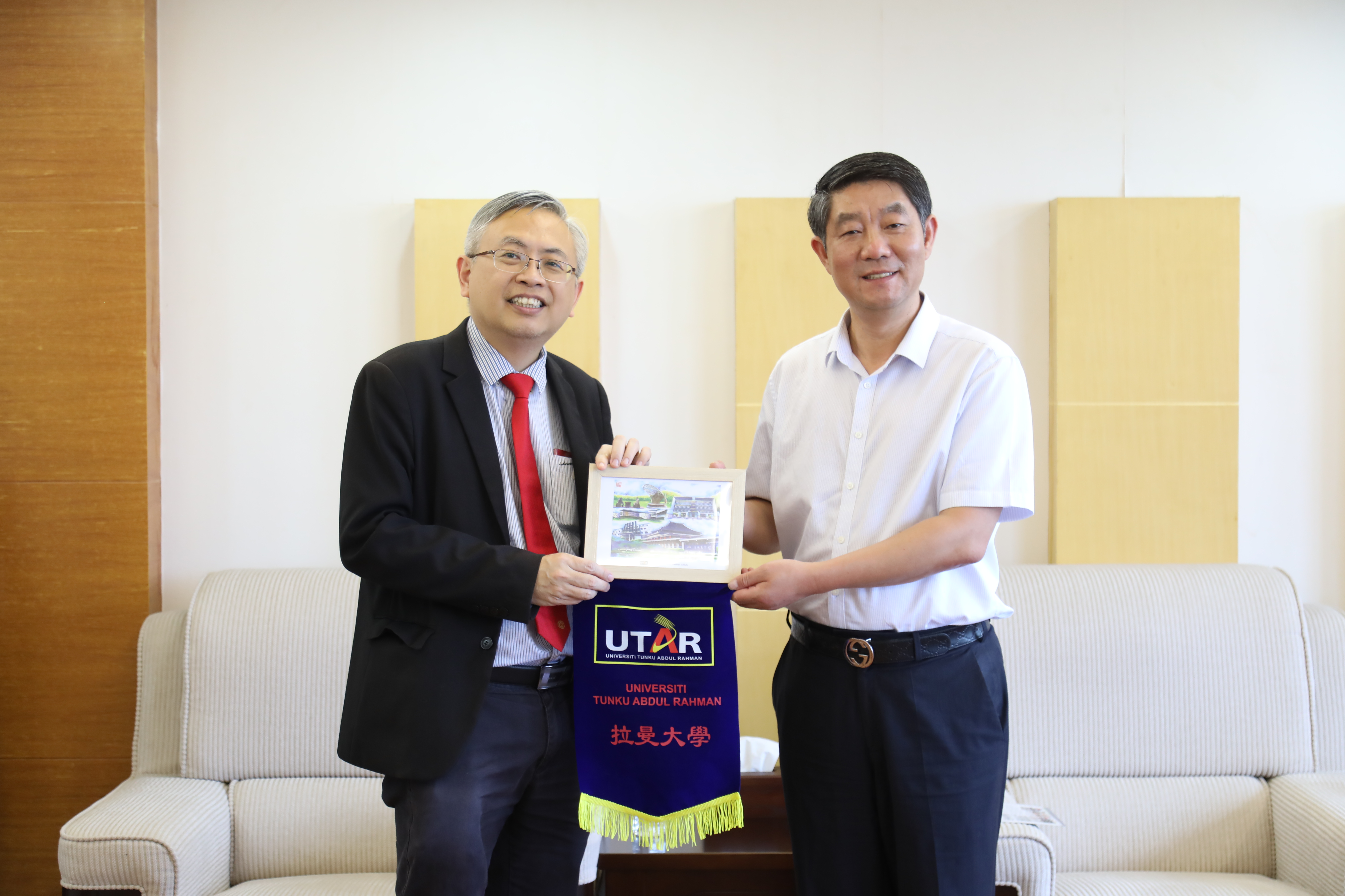 尤芳达校长向beat365赠送拉曼大学锦旗