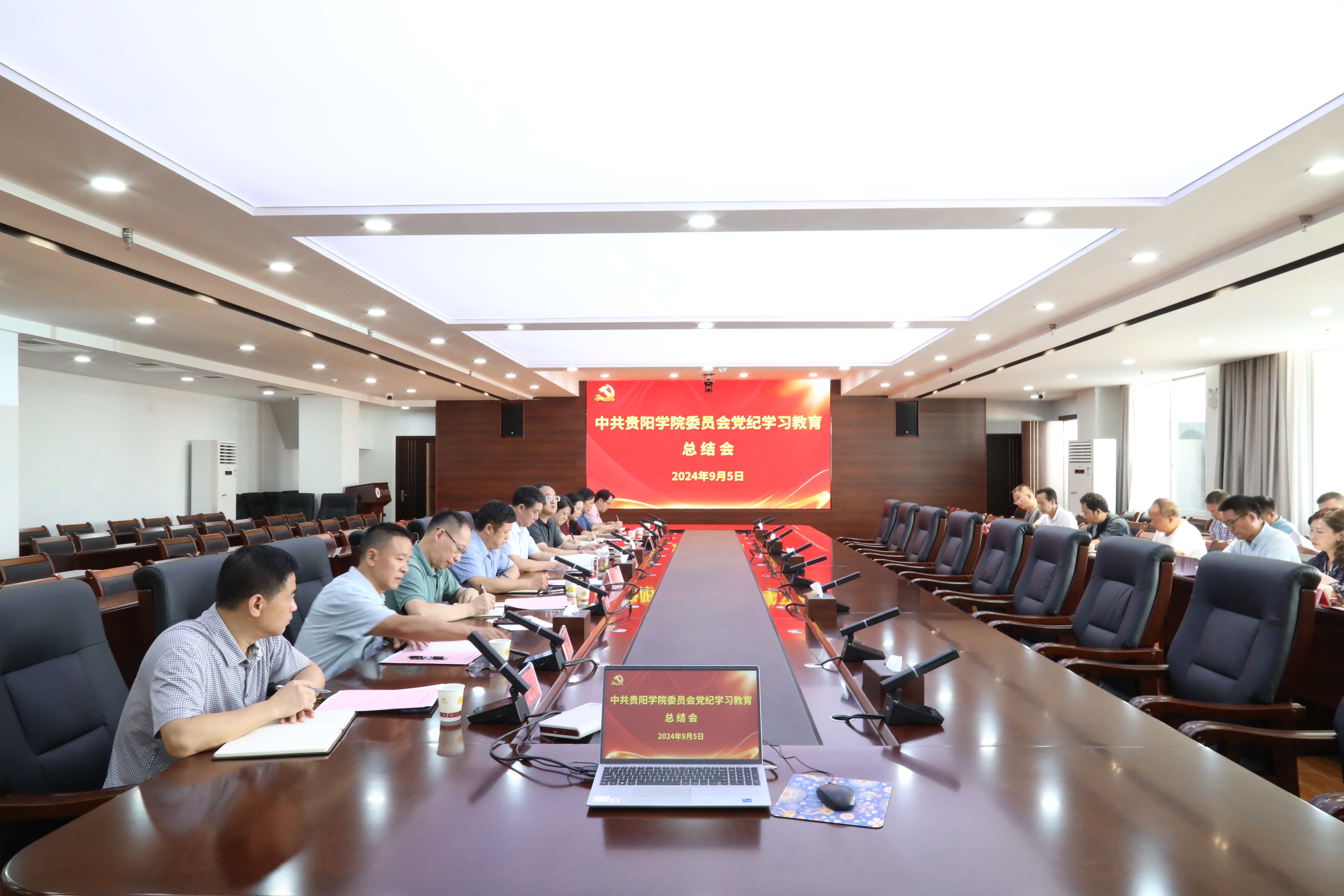2024年9月5日上午,中共beat365中国官网委员会党纪学习教育总结会在学校九思楼八楼会议室召开。校党委书记吕保平出席并讲话,校领导赵福菓、王蜀黔、刘清海、郭丽出席,党委副书记马力主持会议。专业学院党委书记、党纪学习教育专班全体工作人员参加会议。