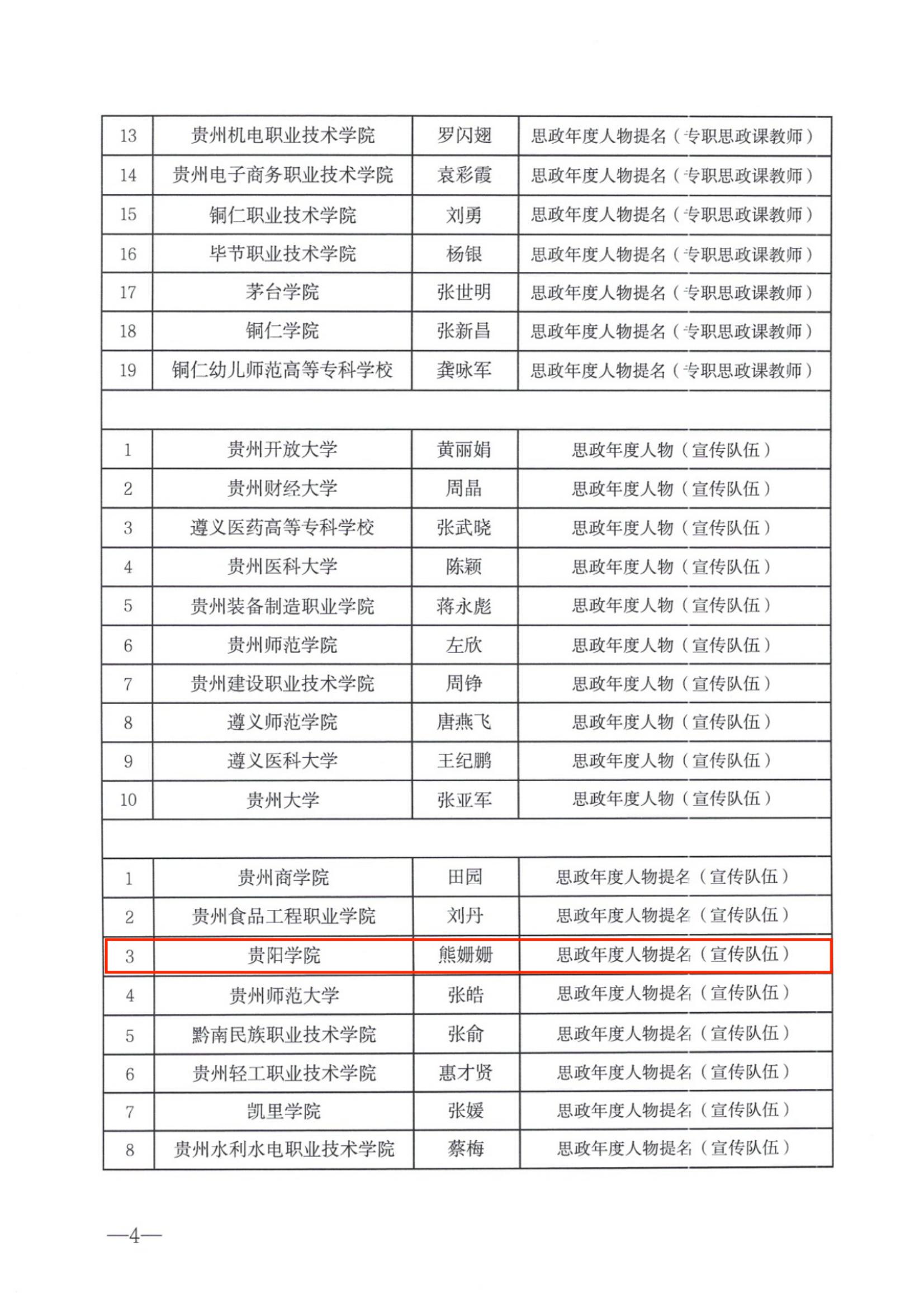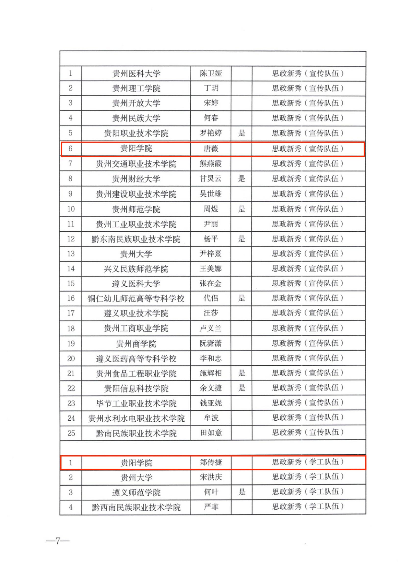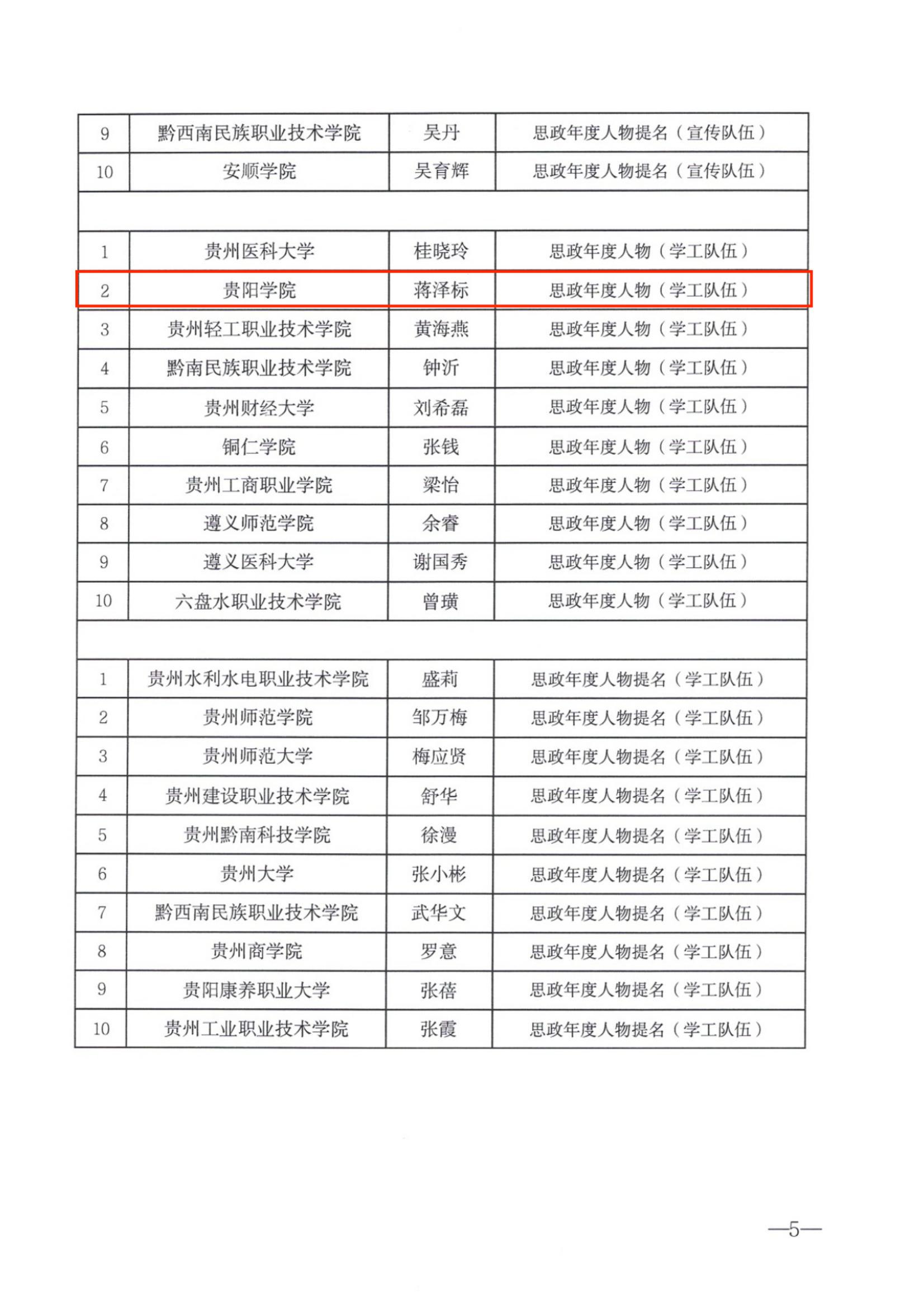 近日,省委教育工委、省教育厅正式印发《省委教育工委 省教育厅关于公布“思政年度人物”“思政年度人物提名”“思政新秀”评选结果的通知》,beat365沈雪蓓老师获“思政年度人物(专职思政课教师)”、熊姗姗老师获“思政年度人物提名(宣传队伍)”、蒋泽标老师获“思政年度人员(学工队伍)”、唐薇老师获“思政新秀(宣传队伍)”、郑传捷老师获“思政新秀(学工队伍)”。