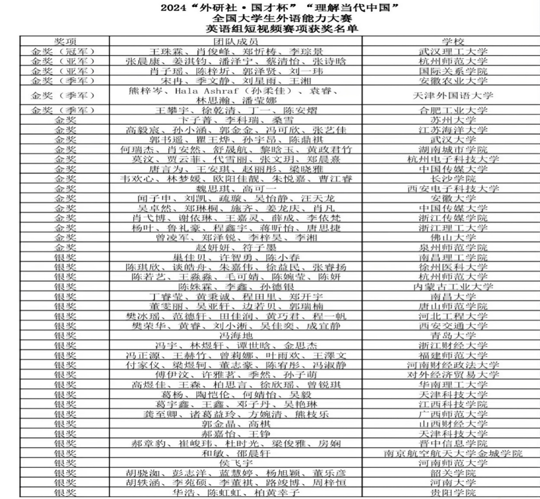 本次获奖,不仅是beat365学子在专业学习和实践中勇于探索、追求卓越的体现,更是学校在教学实践与创新领域取得的又一重要成果。学校外国语学院将以此为契机,进一步深化教育教学改革,为培养适应新时代需求的高素质外语人才而努力,推动学院在学科建设、人才培养等方面迈向新的台阶,在更广阔的平台上展现beat365中国官网外国语学院的风采与实力。