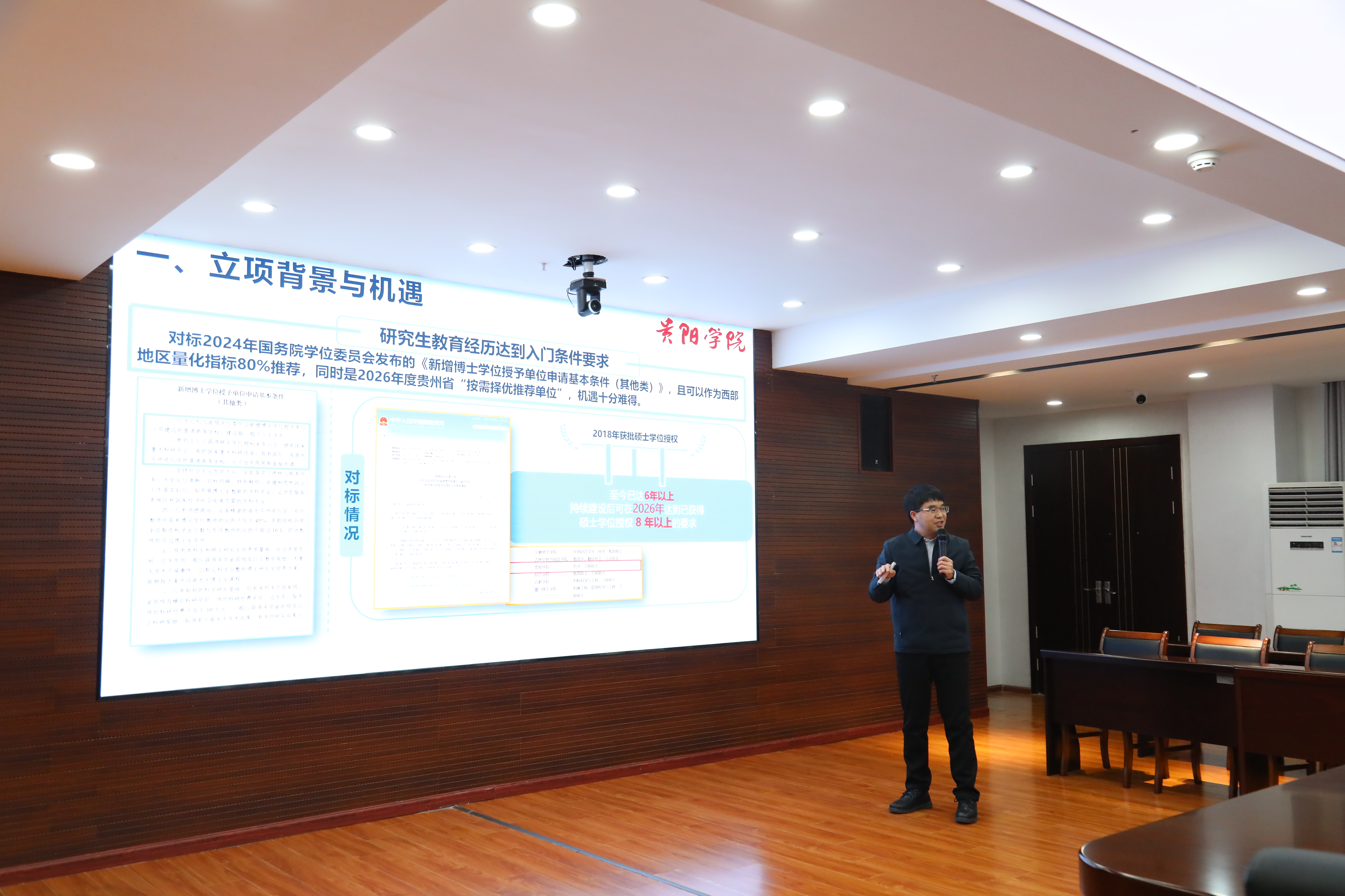 12月20日,beat365中国官网申请增列为贵州省博士学位授予单位立项建设论证会在beat365九思楼八楼会议室隆重举行。省教育厅高教处(省学位办)处长梁恒贵主持会议。专家组组长、贵州装备制造职业学院党委书记熊星,贵州大学、贵州师范大学、贵州财经大学、贵州医科大学等高校的学科建设、学位授权审核专家出席会议。beat365中国官网党委副书记、校长黄营致辞,副校长李灿、刘清海出席会议。