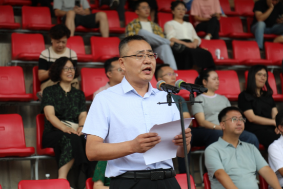 庄严的升旗仪式为典礼拉开序幕,全场师生齐声高唱中华人民共和国国歌,激昂的旋律回荡在校园上空。