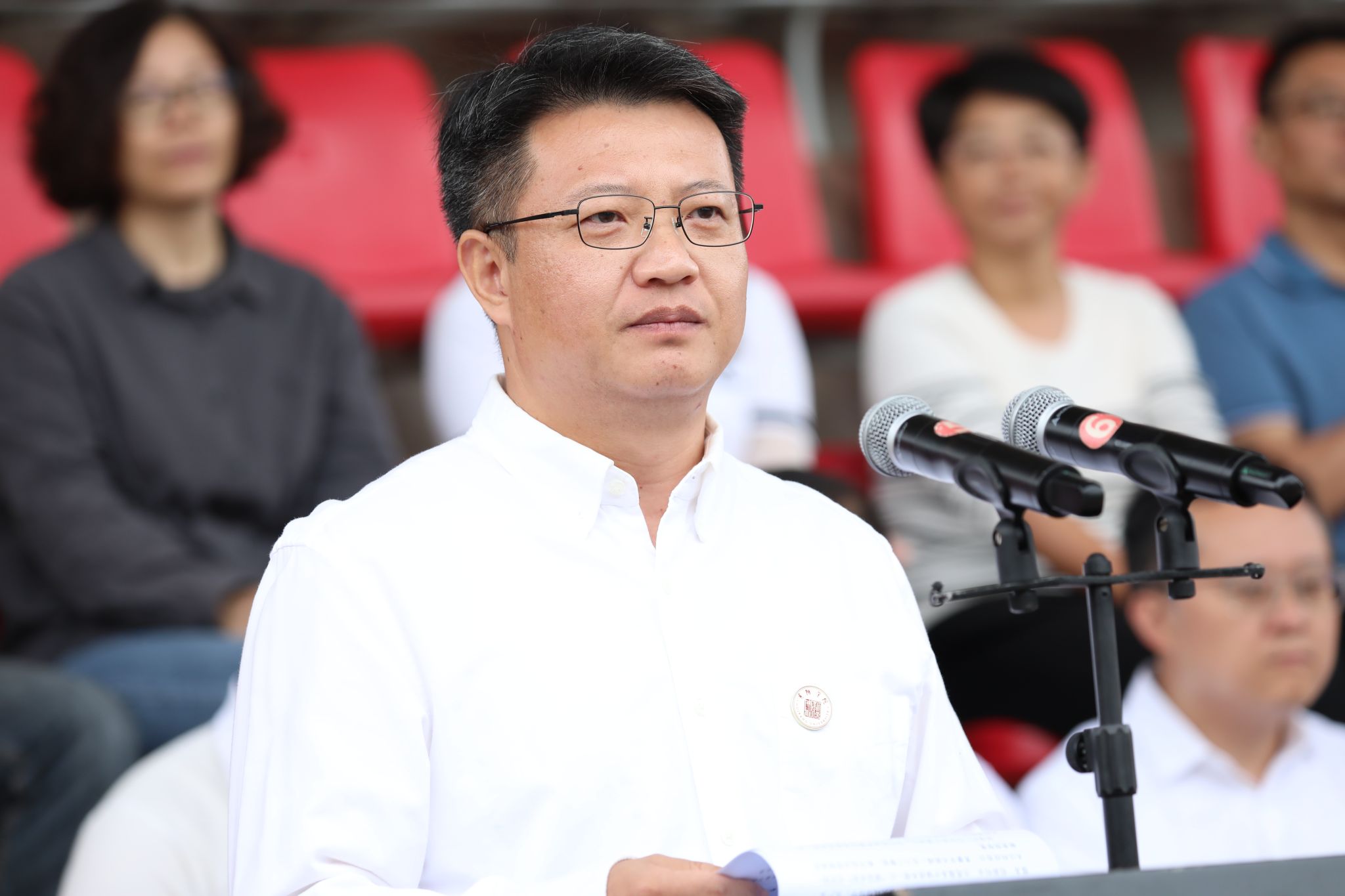 黄营代表学校向圆满完成军训任务的同学们表示热烈祝贺,向承担本次军训任务的武警贵阳支队教官致以崇高敬意,向为军训付出辛勤汗水的辅导员、班主任、后勤保障人员以及各教学院负责教师表示衷心感谢!他表示,军训不仅是大学生活的起点,更是一堂生动的爱国主义教育和国防教育课。同学们步伐整齐、气宇轩昂,以“请党放心、强国有我”的信念,将爱国情怀融入每一声口号、每一滴汗水,尽显青春担当。