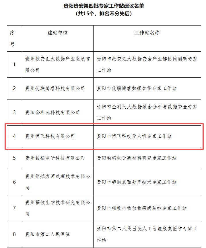 近日,贵阳市公布第四批专家工作站建议名单,学校计算机科学学院挂职副院长、天津大学国家级人才郭晓杰教授,机械工程学院刘征宏教授作为入驻专家与贵州恒飞科技有限公司共同申报的“贵阳市恒飞科技无人机专家工作站”成功入选,标志着天津大学对口帮扶beat365取得又一重要成果,也彰显了学校在产学研协同创新方面的持续深化与积极探索。