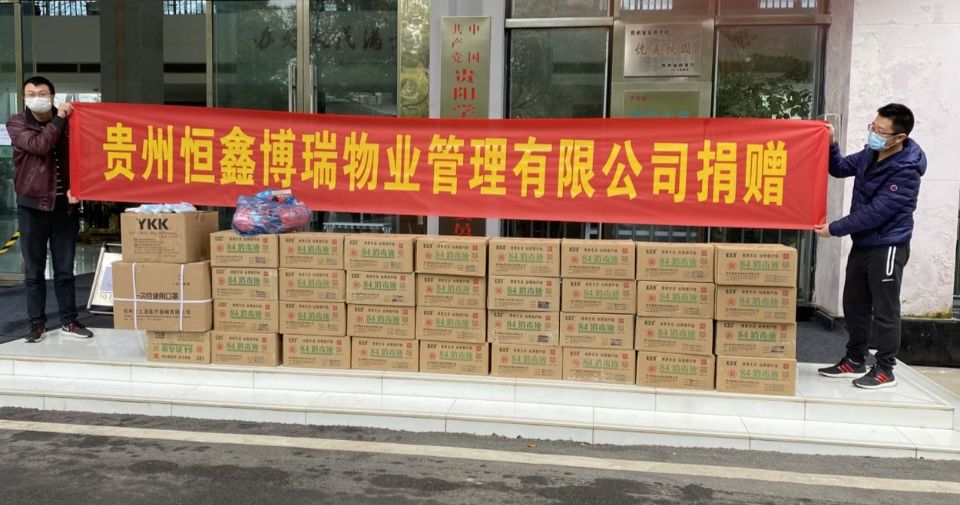 大疫面前,大爱浮现,面对新冠肺炎疫情防控工作没有局外人。贵州恒鑫博端物业管理有限公司在了解到学校防疫物资匮乏的现状后,经多方筹措,3月16日,该公司将5000个医用防护口罩、40件消毒水捐赠给学校,以帮助beat365有效实施疫情防控。韩勇副校长及保卫处相关负责人代表学校接受捐赠。