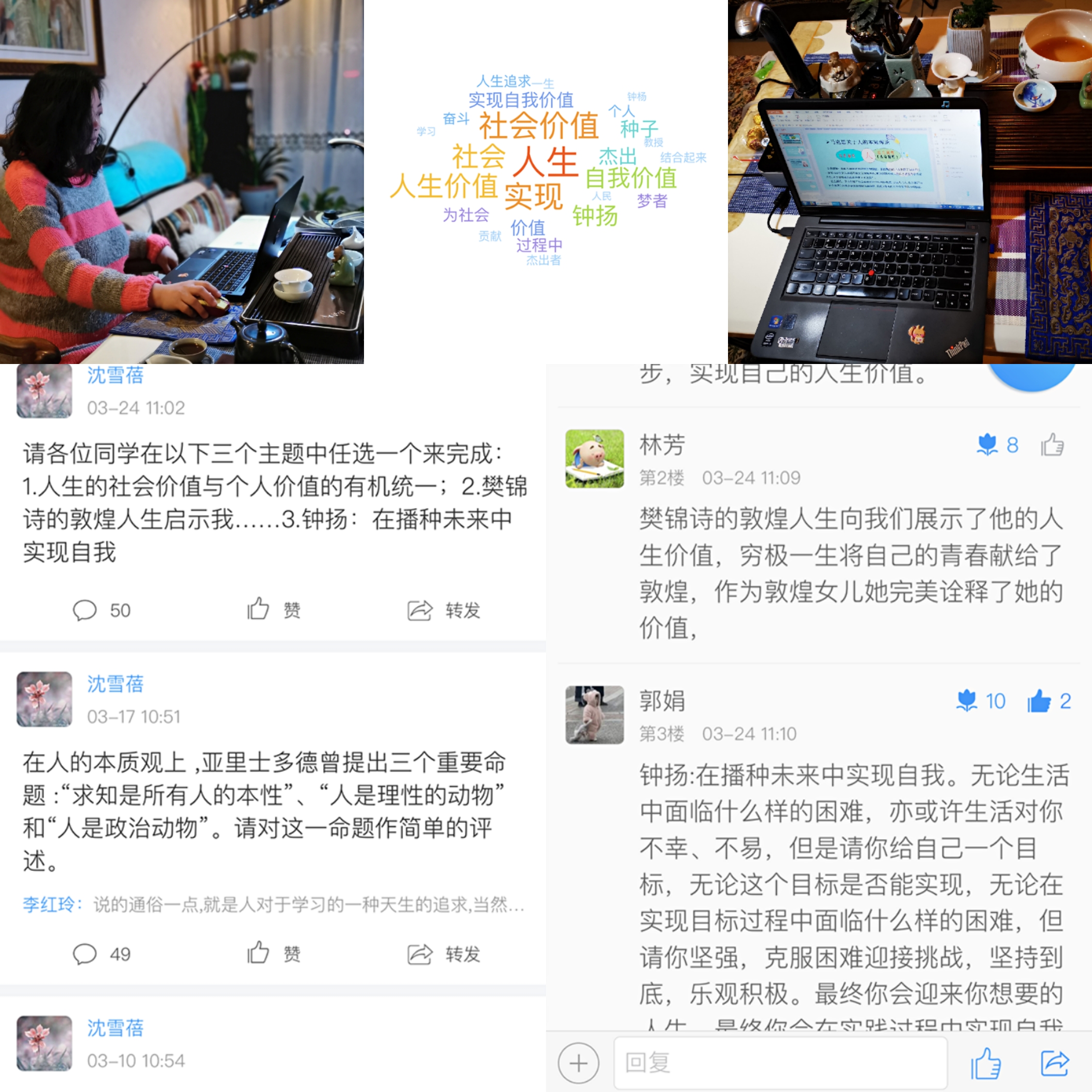 形式多样,确保学习质量“不掉线”。3月2日开展线上教学以来,广大任课教师能够以严谨负责的态度,克服各类技术困难和教学习惯,努力探索合适的教学方式、合理设计教学内容,守护好虚拟三尺讲台,让同学们拥有更好的课堂体验,实现师生共同成长。老师们通过录播、直播、录播+直播、直播+互动,慕课+研讨等方式开展了内容丰富、形式多样的教学活动。目前,任课教师已基本适应线上教学,学生能够密切配合教师,积极参加签到、讨论互动、回答问题、完成作业等教学环节。师生们反馈,学校在线教学安排合理有序,教学进展顺利,线上资源丰富,师生对在线教学的组织、教学状况及质量工作总体比较满意。