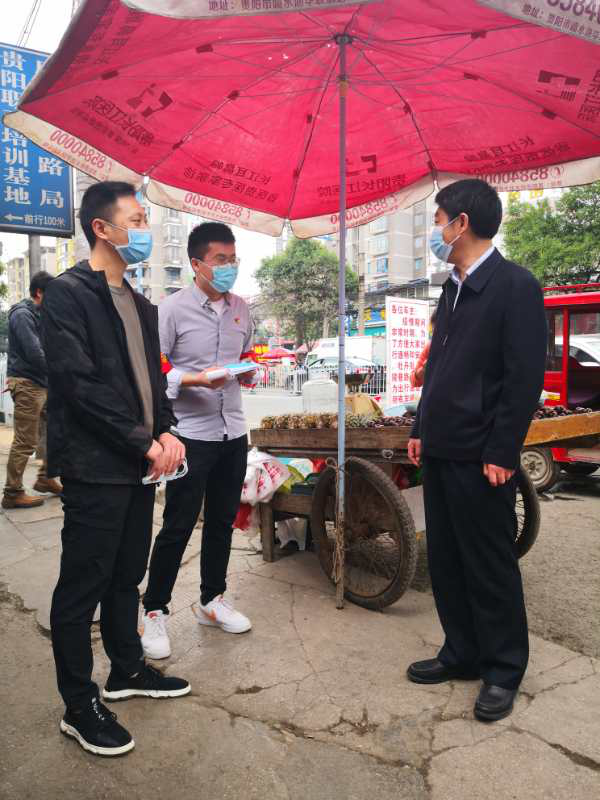 4月13日,beat365第十批干部职工志愿者分赴南明区二戈寨街道办事处、中华南路街道办事处各疫情防控卡点,担任“筑城抗‘疫’志愿攻坚队”队员,开展阻击疫情志愿服务活动。他们是马克思主义学院副院长周玲、教务处教学管理科科长吴俨、党委组织部张钰玉、保卫处李知强四位同志。