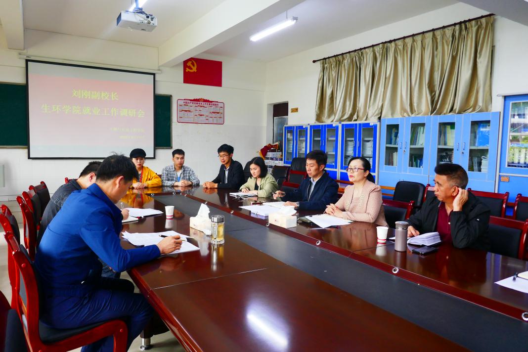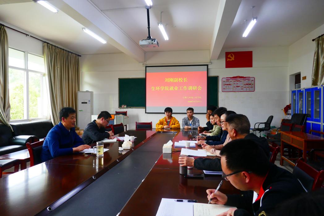 为进一步落实学校2020年毕业生就业创业工作(第二次会议)暨农村建档立卡贫困家庭毕业生就业工作推进会精神,2020年5月27日下午,刘刚副校长深入生物与环境工程学院就就业创业工作推进情况进行检查,对就业创业工作进行调研和指导。招就处副处长张瑞陪同,生环学院在家领导刘燕、高喜明、叶孝勇,就业指导老师、团总支书记、辅导员、毕业生代表等有关人员参加工作会议。