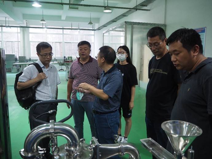 李言郡院长一行首先参观了学院科研实验室及贵州省果品加工工程技术研究中心产学研基地,对食品与制药工程学院的相关科研成果及实验-中试-应用的科研思路赞许有加。