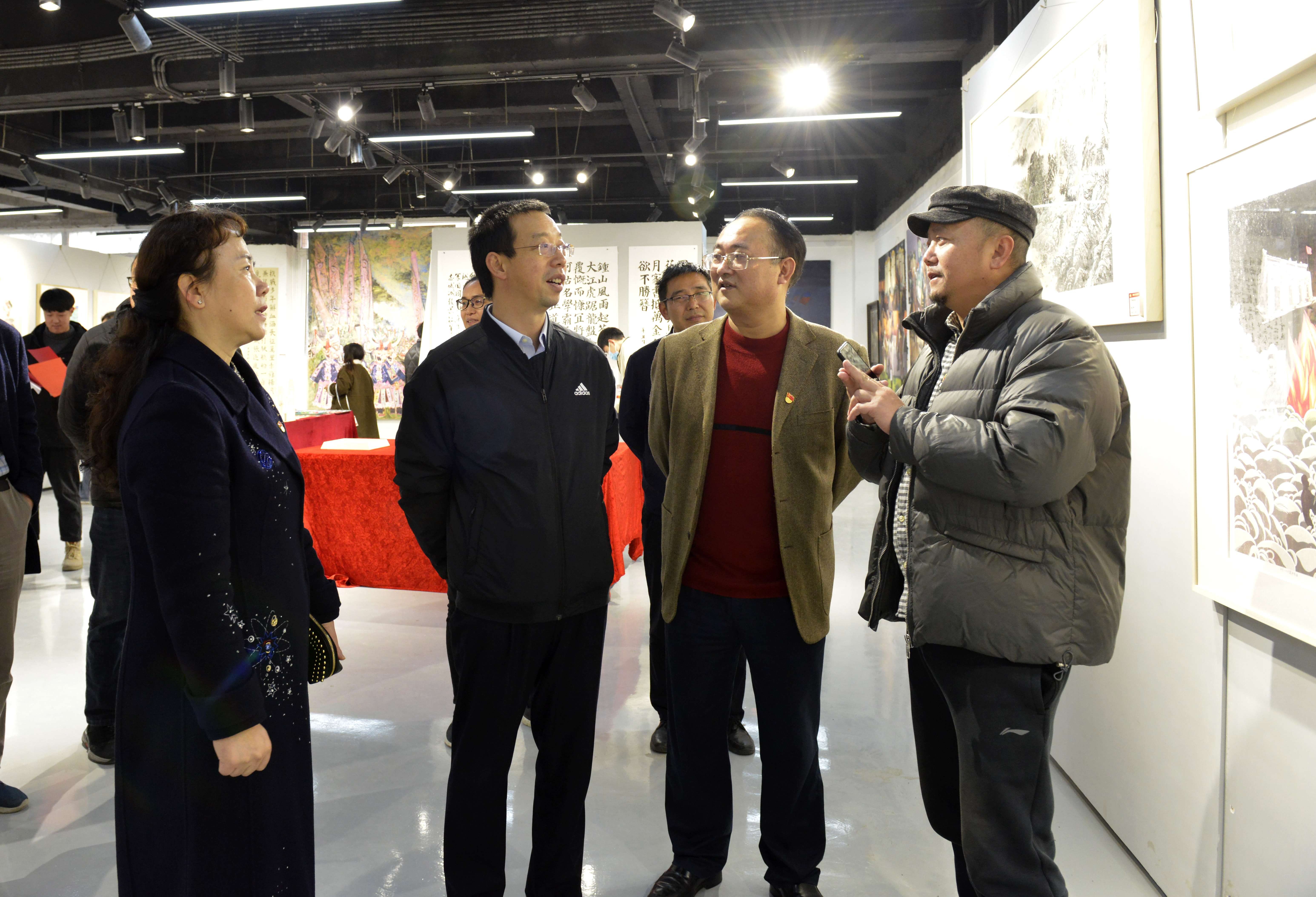 2021年12月3日,由党委宣传部、党委学生工作部、美术学院党委联合举办的“美术作品中的党史”作品展在美术学院展厅开展。校党委副书记、校长邓朝勇,党委副书记焦艳、赵福菓出席,各相关部门、教学院负责人、师生代表参加。