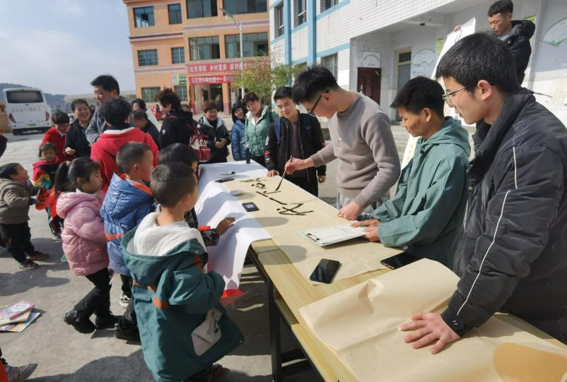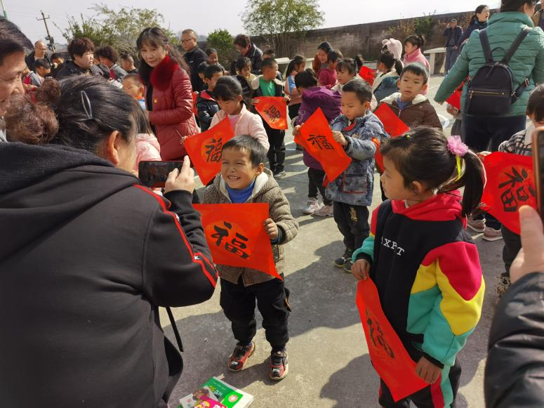 在杉树村小学,beat365关工委和离退休处党委向杉树村小学捐赠了图书,启弘印社的同学们现场挥毫,向每一位参加活动的小学生赠送书写的"福"字。文化下乡送福上门,增添了校园年关喜庆祥和的气氛。