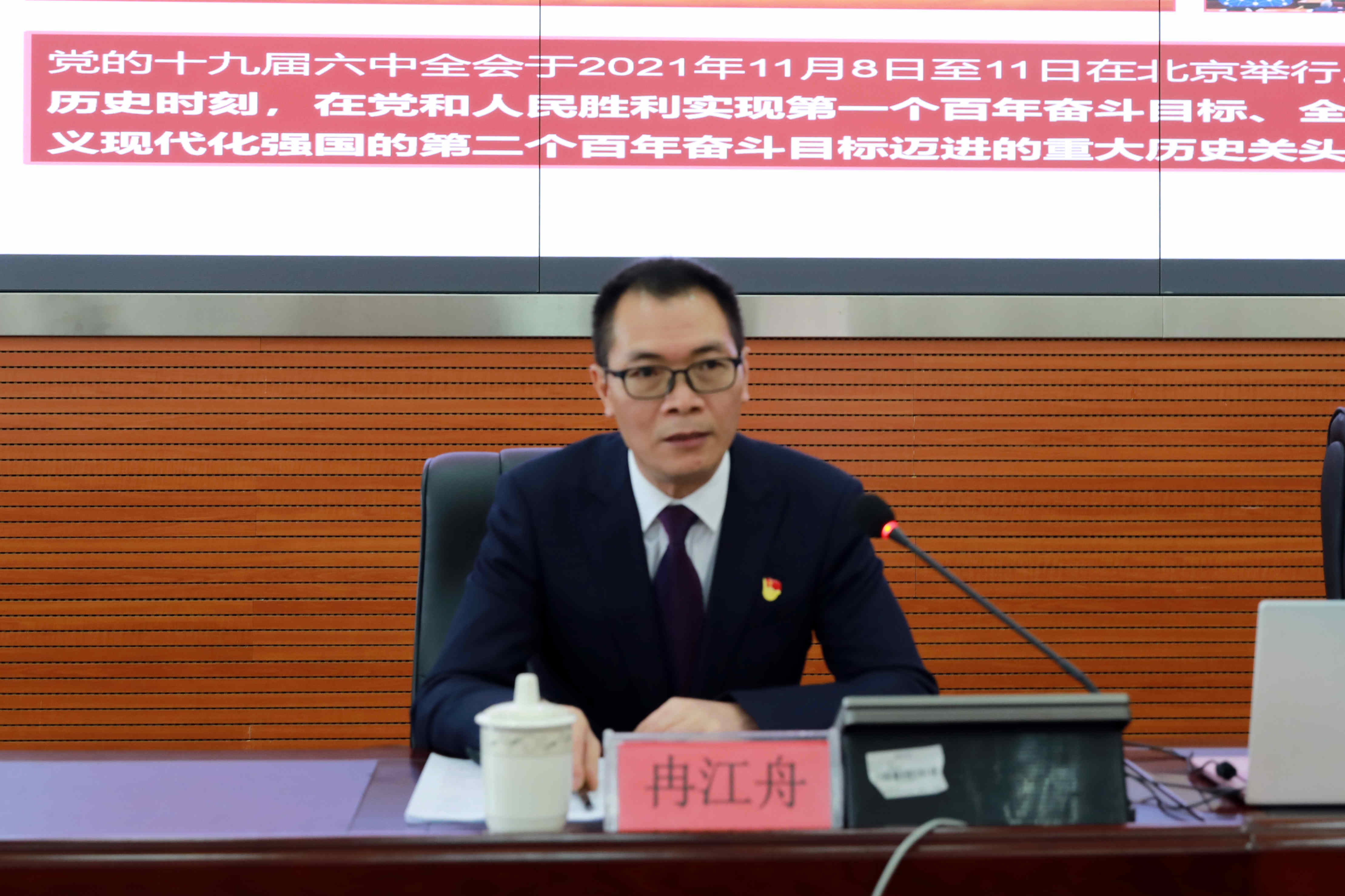 冉江舟从党的百年奋斗重大成就和历史经验的重大意义,党的百年奋斗的初心使命和重大成就,深刻认识《中共中央关于党的百年奋斗重大成就和历史经验的决议》的重要内容和重要意义三个方面,对党的十九届六中全会和省委十二届十次全会精神进行了深入系统的宣讲。