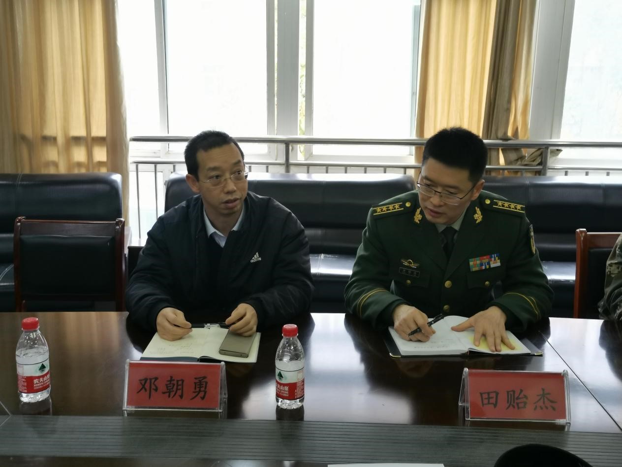 邓朝勇对田贻杰一行的到来表示欢迎,就支队对学校各方面的支持和帮助表示感谢。他说,这次军地合作是一个契机,学校将进一步加深和部队之间的交流与合作,加大人才培养力度,尽快组建工作队伍,探讨拟定实施方案,将工作抓紧抓细,推动工作落实、落地,充分发挥高校优势、专业文化优势,全力支持贵阳武警支队文化建设。