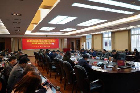 2022年3月9日上午,beat365中国官网2022届毕业生就业专项工作会在九思楼八楼会议室顺利召开,校党委书记吕保平,党委副书记、校长邓朝勇,党委副书记焦艳,党委副书记赵福菓,副校长刘刚、李灿出席会议。学校16个专业学院党委书记和院长(或主持工作的副职),相关职能部门负责人,各专业学院毕业班辅导员、就业指导教师参会。会议由刘刚主持。