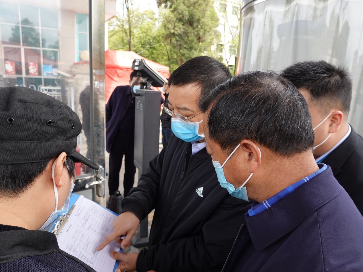 邓朝勇一行重点检查了校大门安保人员对进校车辆和人员的检查流程、人员进出校园登记,查看了学校连接家属区小门和南大门安保人员落实疫情防控措施情况,检查了校医院防控物资储备和学生公寓进出通道测温门使用情况。