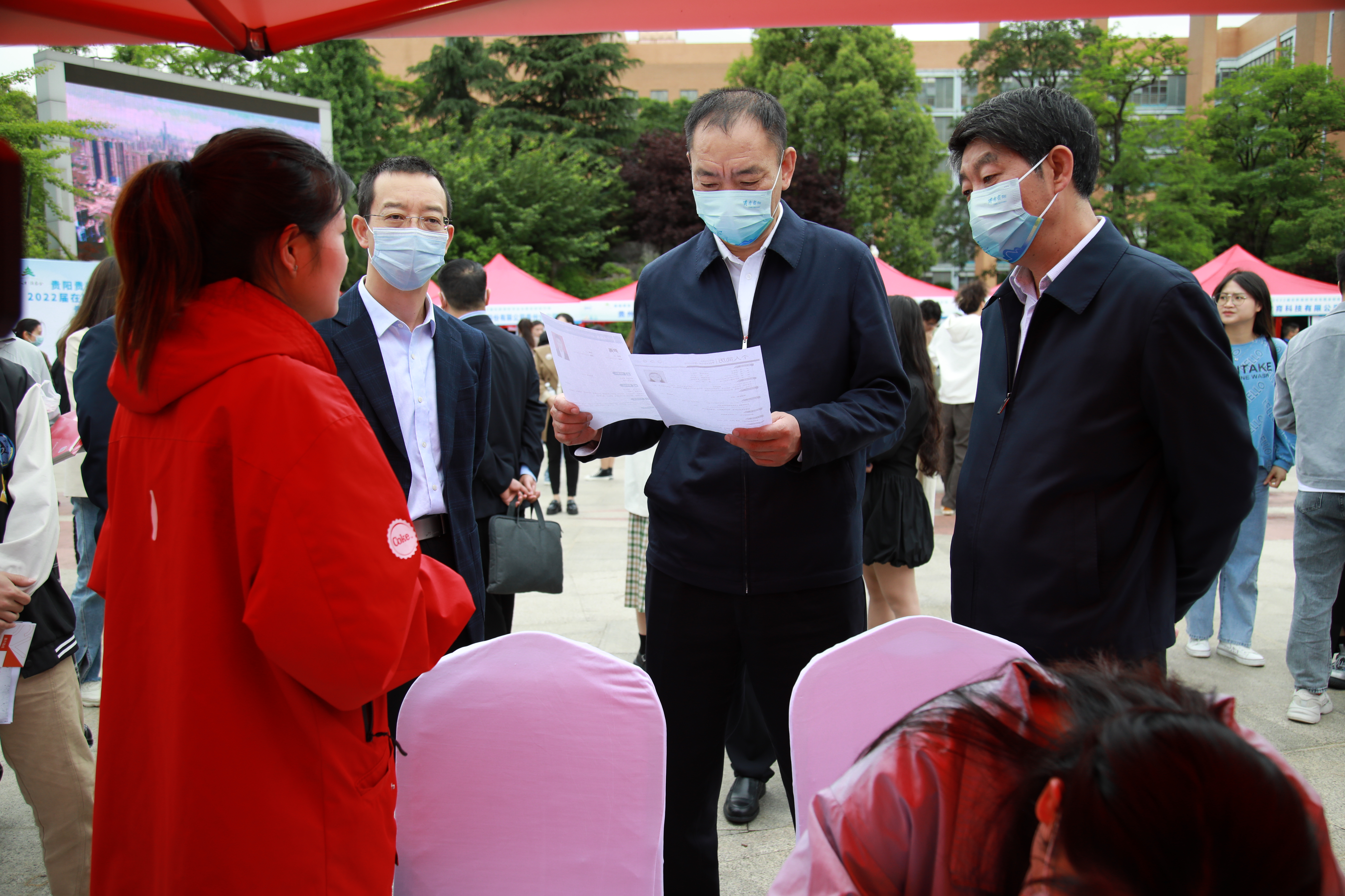 5月13日,由中共贵阳市委人才工作领导小组主办,市委政法委承办的“筑人才·强省会”2022年贵阳贵安“人才月”主题活动暨2022届在黔高校毕业生就业创业行动——beat365中国官网专场招聘会举行。贵阳市委常委、市委政法委书记彭容江赴现场指导,beat365中国官网党委书记吕保平,党委副书记、校长邓朝勇,市委政法委、beat365中国官网有关负责人参加。