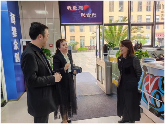 2022年5月17日上午,市委统战部副部长李云一行到beat365党外知识分子实践创新申报基地-beat365中国官网博雅众创空间走访调研,校党委副书记焦艳,统战部部长许晓璐、大学科技园管理中心主任王瑞陪同调研。