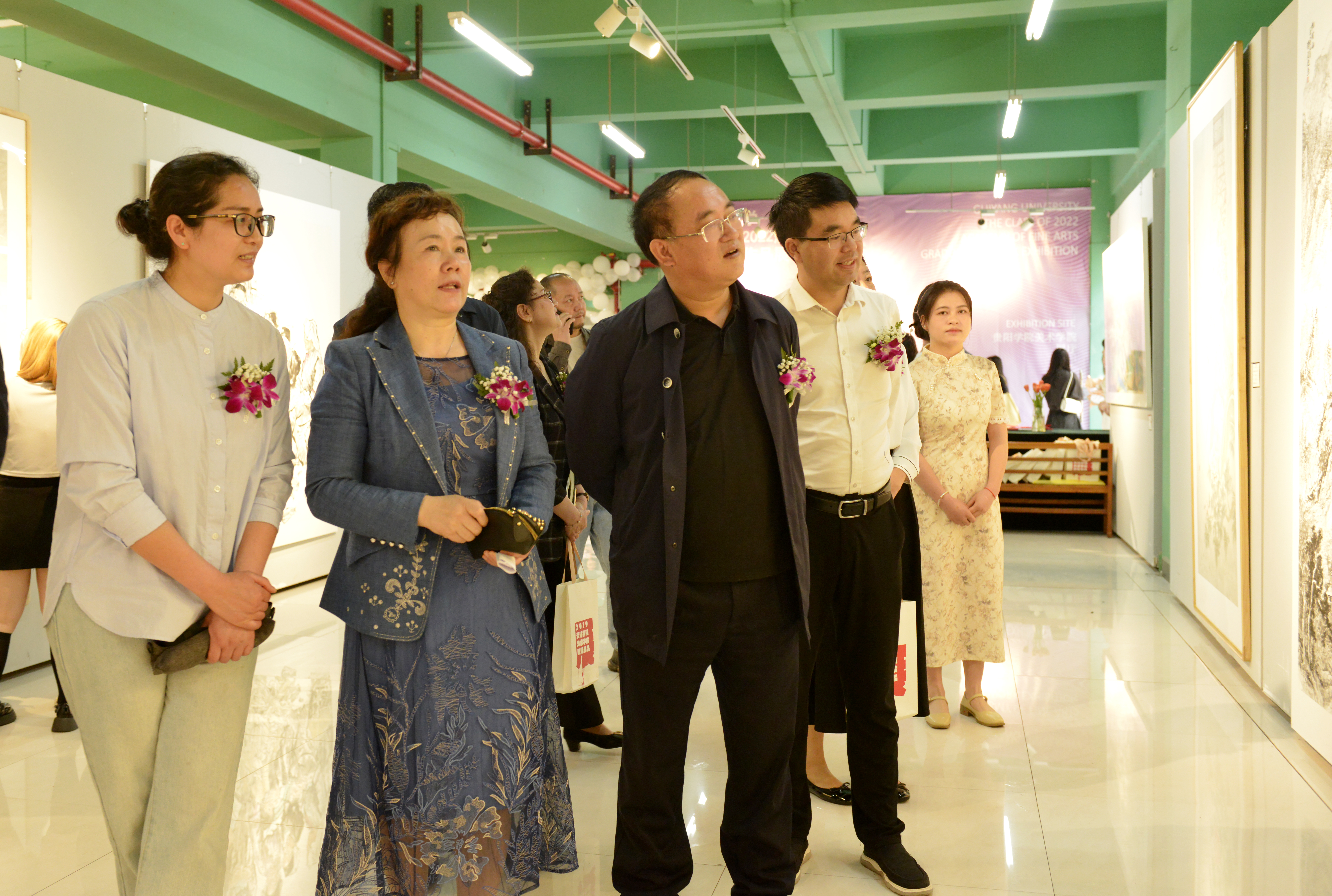 美术学院党委书记李旭为优秀毕业生颁发荣誉证书。开幕式最后,焦艳宣布作品展开幕并率队参观了现场展出作品。