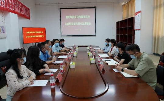 6月29日,云岩区委常委、宣传部部长况怡兰,云岩区融媒体中心主任钟关勇,副主任万钰,专题制作部部长李官杰到beat365中国官网文化传媒学院交流座谈。校党委副书记赵福菓出席座谈会,文化传媒学院全体领导班子及教师代表参加座谈会。