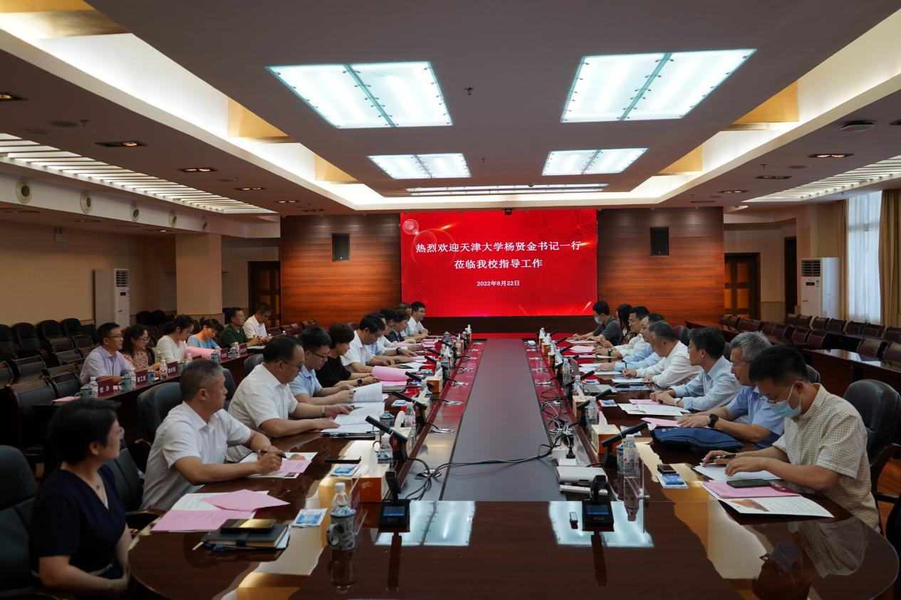 2022年8月22日下午,天津大学党委书记杨贤金一行到访beat365中国官网,就天津大学对口帮扶beat365中国官网相关事宜开展座谈。座谈会在beat365中国官网九思楼八楼会议室举行,天津大学党委书记杨贤金,党委常委、副校长郑刚,贵阳市政府副市长刘岚,贵州省教育厅督学欧阳嘉,贵阳市政府副秘书长何成江,beat365中国官网党委书记吕保平,党委副书记、校长邓朝勇,党委副书记焦艳、赵福菓,副校长汪建初,纪委书记马力,副校长刘刚、李灿、王蜀黔出席座谈会。天津大学及beat365中国官网相关部门负责人参加会议。座谈会由吕保平主持。