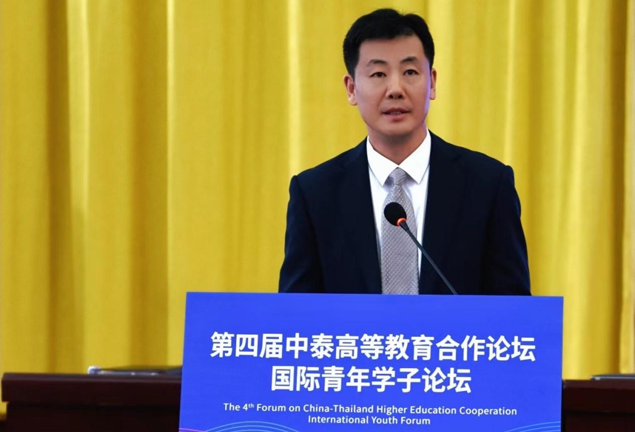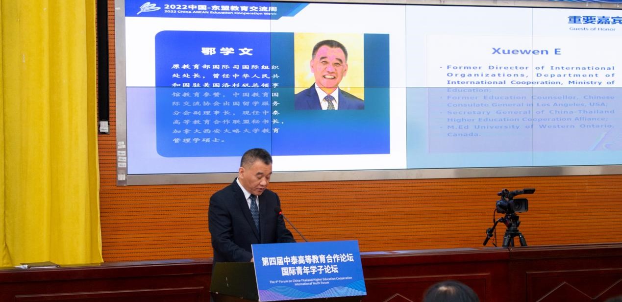 鄂学文致开幕辞,期望本次论坛能够推动更多的优秀青年登上世界的舞台,各国学子广泛交流思想,建立友谊,凝聚共识,共同成长。他表示中泰高等教育合作联盟永远是联系中泰两国高等教育和青年人的平台与桥梁,也是区域乃至世界和平与发展的维护者和推动者,希望本次活动能够向世界讲好青年人的故事、传播好青年人的声音!