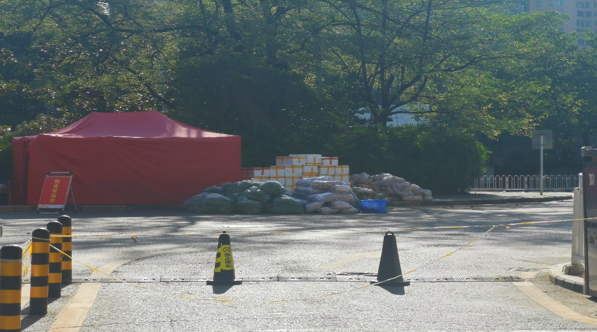 (校门外消杀后待转运物资)