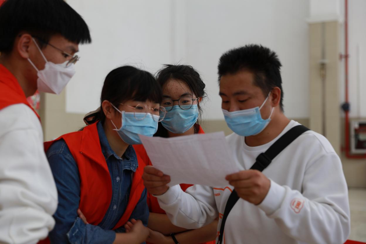 (大学生志愿者正在核对检测名单)