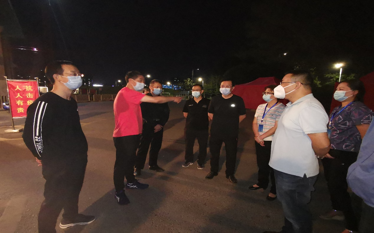 (党委书记吕保平、校长邓朝勇夜间调度新冠抗原自检工作)