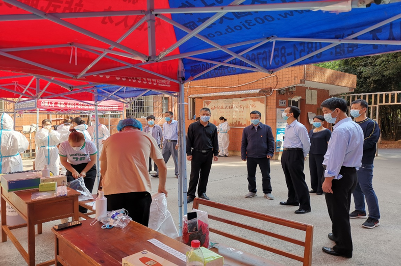 (督查组在检查核酸检测点位工作情况)