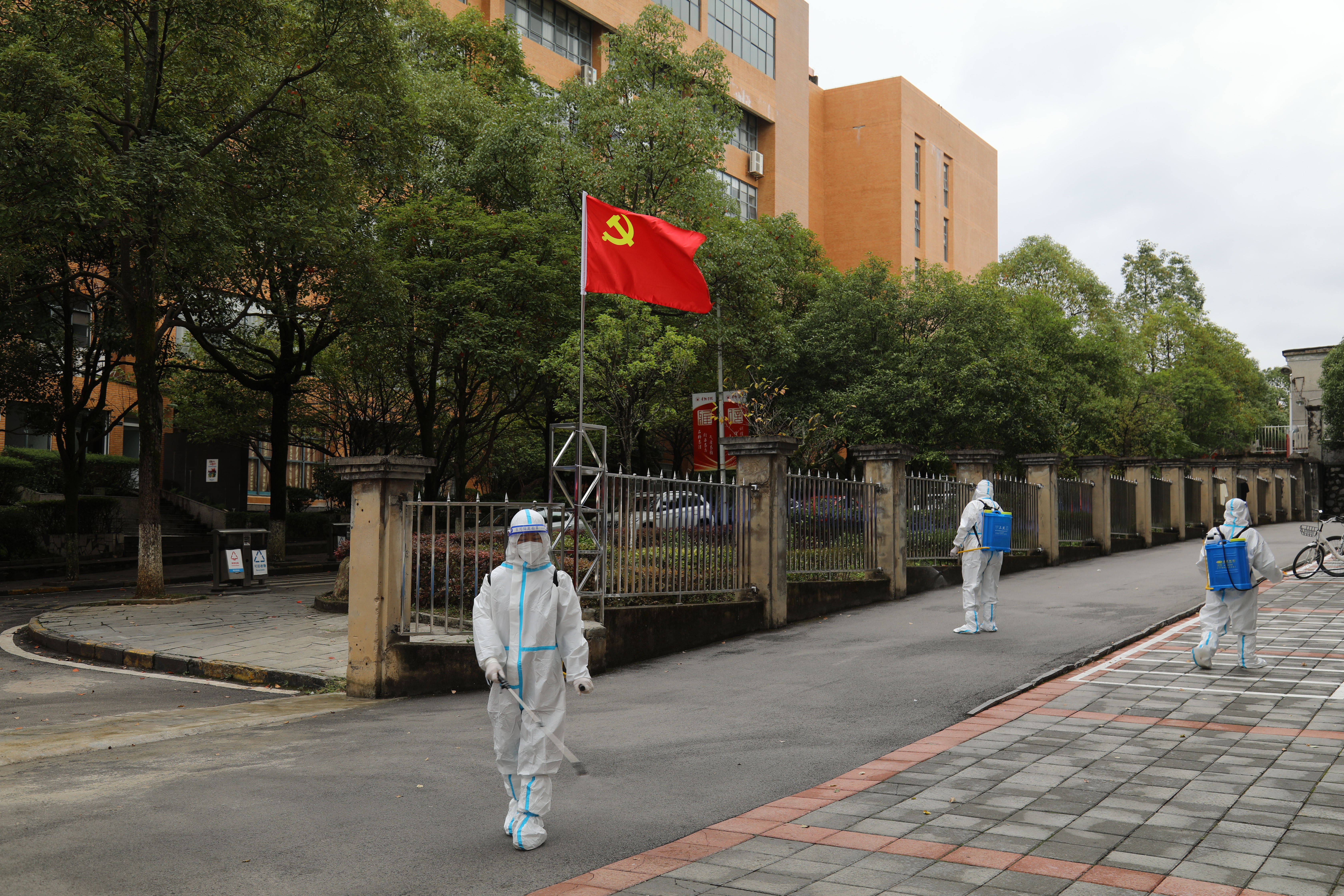 在模拟疫情突发应急处置演练中,学校模拟从发现、转运、隔离、现场安全管控、消杀等全流程疫情应急步骤及措施。整个演练过程紧张有序,参与演练的专班工作人员分工明确、各司其职,协同合作、处置得当,科学、规范、有效地落实疫情防控各项措施。