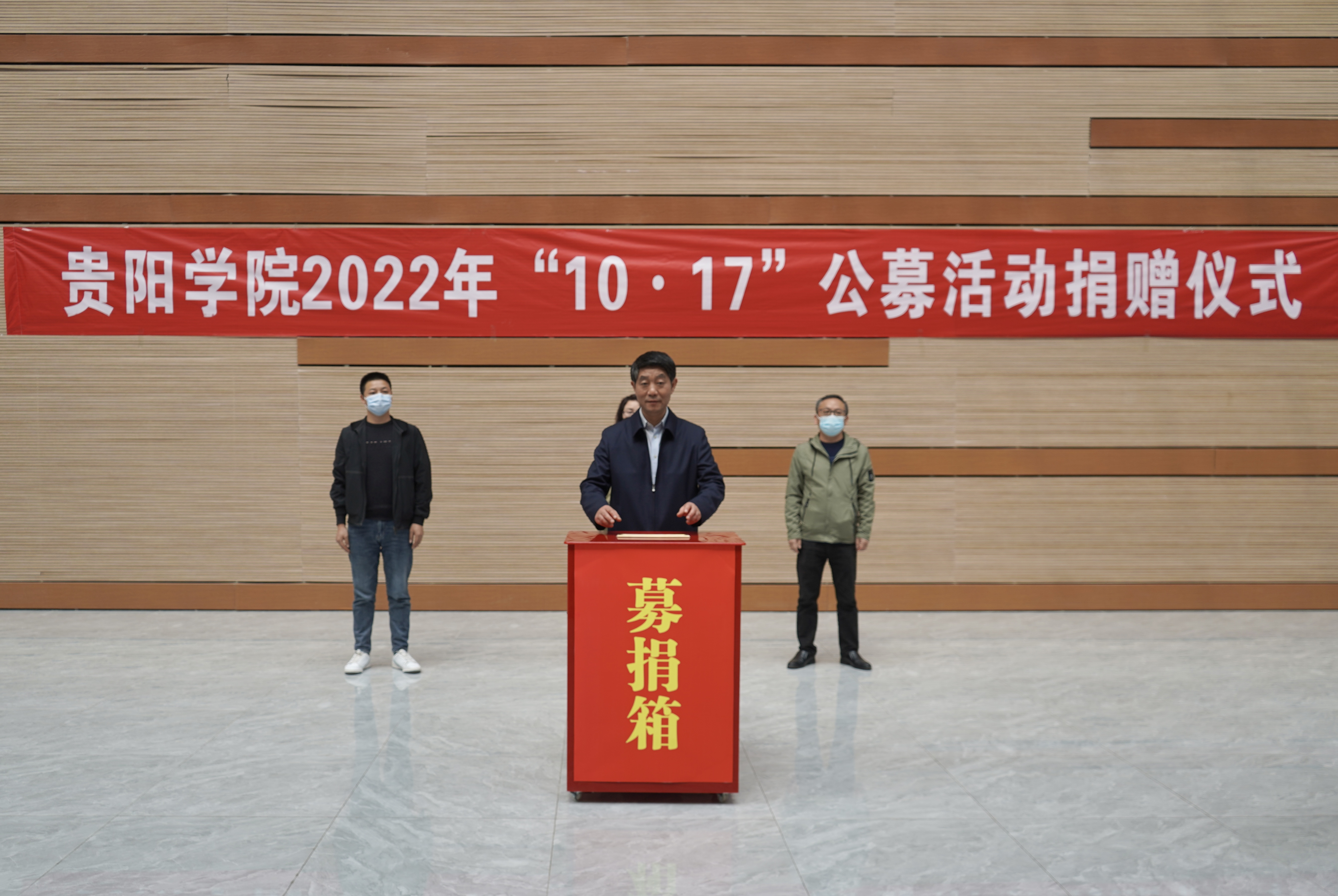 2022年10月17日,beat365中国官网在学生活动中心大楼二楼大厅举行2022年“10.17”公募活动捐赠。校党委书记吕保平,党委副书记焦艳、赵福菓,副校长汪建初,纪委书记马力,副校长刘刚出席,各专业学院、校直部门教职工代表参加了捐赠活动。