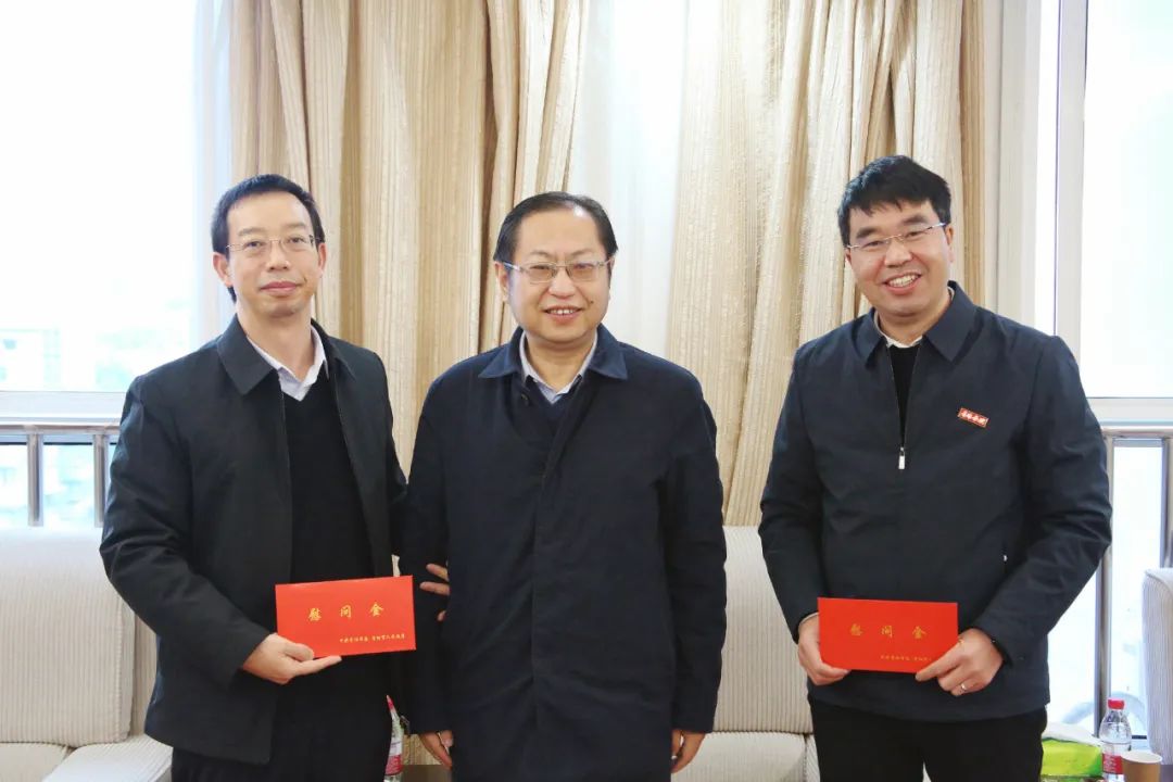 1月16日,受市委、市政府委托,市教育局党委书记、局长李波看望慰问beat365中国官网党委副书记、校长邓朝勇,beat365中国官网党委委员、副校长李灿,向他们致以新春的问候和美好祝福,并送上慰问金。