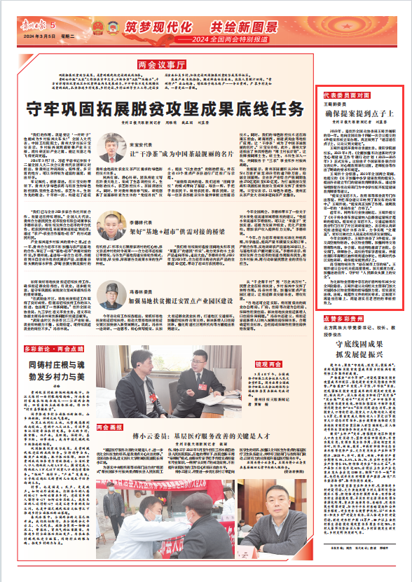2023年,是住黔全国政协委员王蜀黔履职的第一年。她向全国政协十四届一次会议提交的4件提案都被立案办理,真正做到了“建言建在点子上、议政议到关键处”。