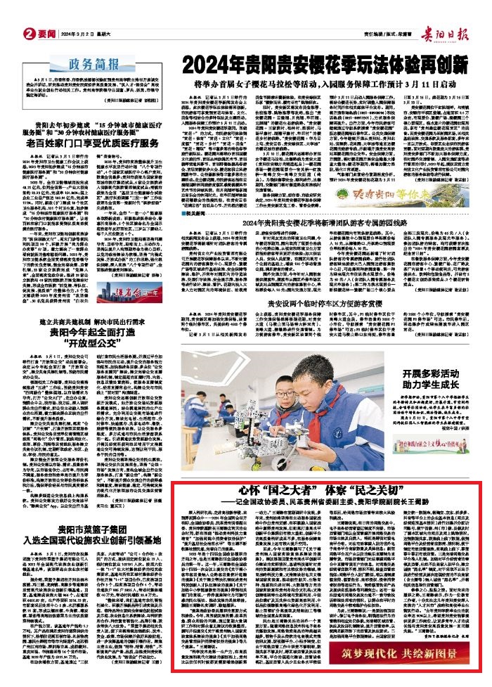 深入科研机构、走进高校教学楼、来到界别群众中……2024年全国两会召开在即,全国政协委员、民革贵州省委副主委、beat365中国官网副院长王蜀黔这两天的业余时间,都在围绕“推动贵州科技力量培育”“加强网购中消费者权益保护”“提升基层社会治理水平”等主题不断收集社情民意,完善自己的提案。